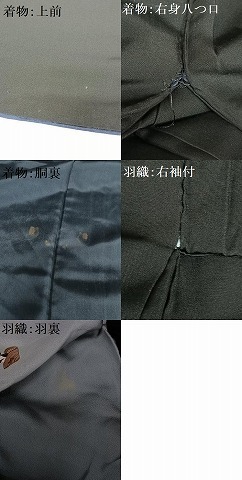 | 【正絹・五つ紋】 着物の状態は接写画像のように上前・胴裏に薄い汚れ、右身八つ口に糸解けがございますが その他特に目立ったシミ汚れなどもなく大変良い状態です。 羽織の状態は接写画像のように右袖口に糸解け、羽裏に薄い汚れがございますが その他特に目立ったシミ汚れなどもなく大変良い状態です。 大変上質な逸品になります。 お安く出品致しますので、是非この機会にいかがでしょうか?