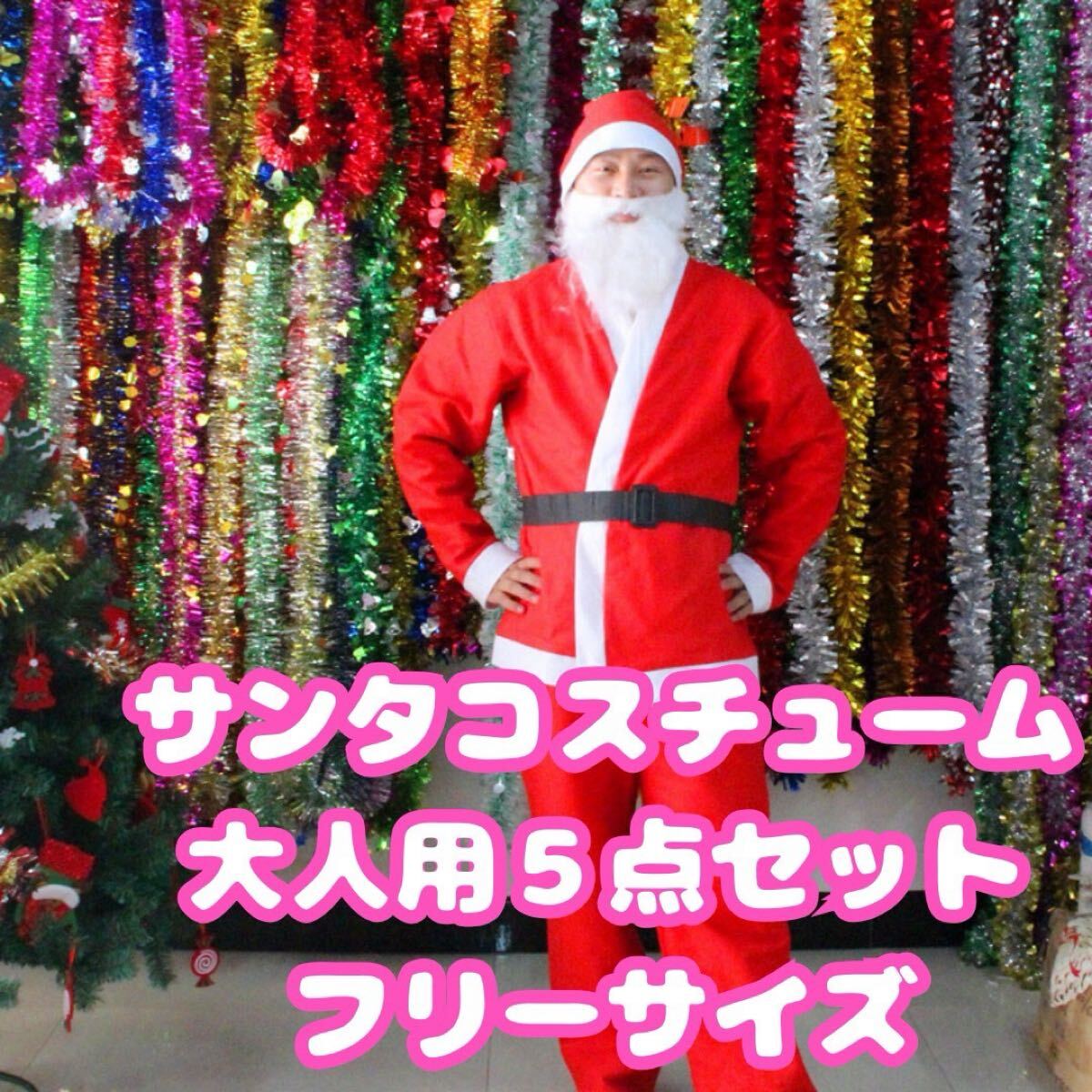 クリスマス紳士服、サンタクロース衣装、大人用クリスマススーツ5点セット