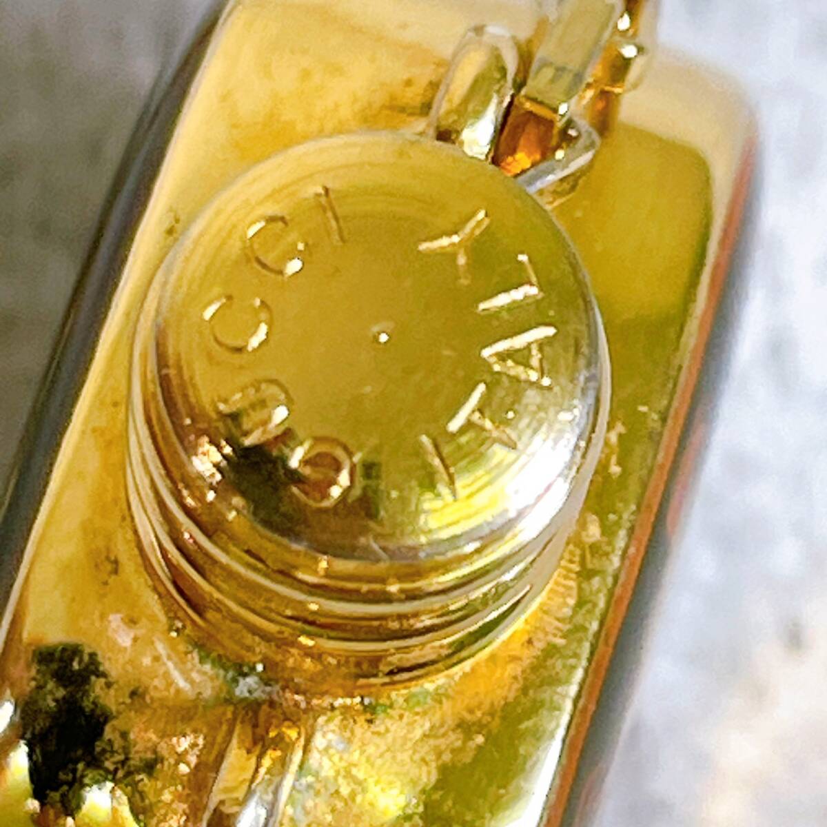 トップ部分に「GUCCI」「ITALY」刻印あり。チェーンも付属しています。