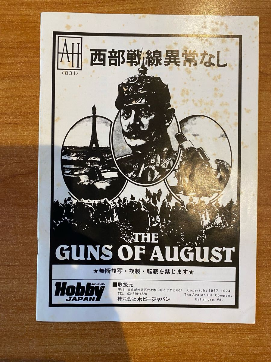 Avalon Hill(アバロンヒル)社のシミュレーションゲーム 西部戦線異常なし(原題 Guns of August)の出品です。
