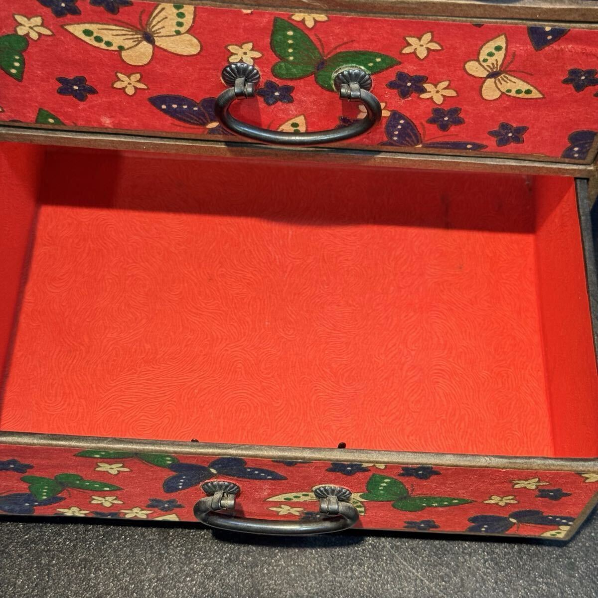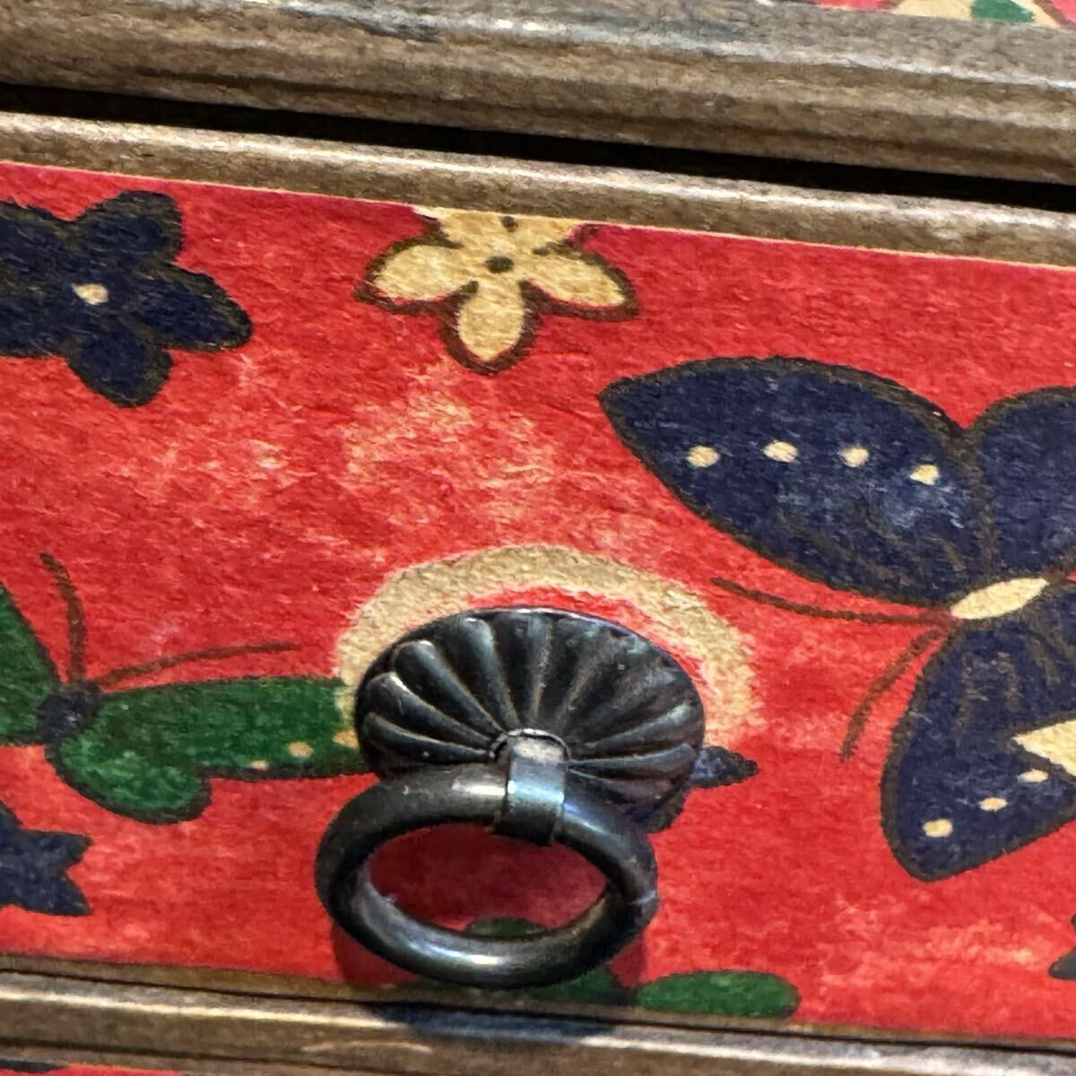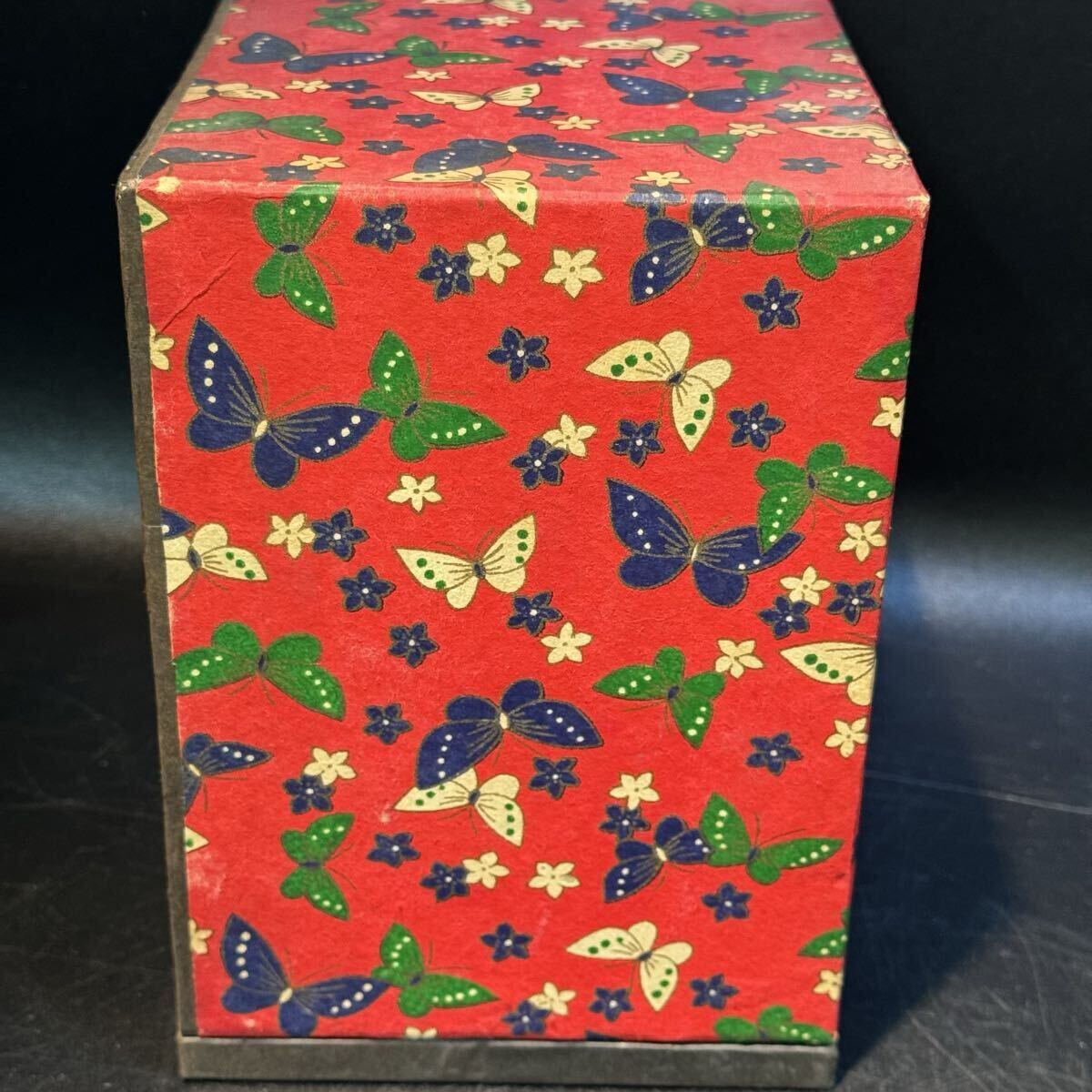 綺麗な赤色に蝶の群舞が可愛らしいです。