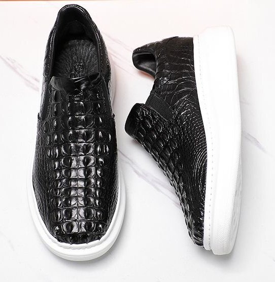 クロコダイルレザー スニーカー 最高級 ワニ革 クロコダイル 靴 メンズシューズ 革靴 ブラック 24.0cm 【n791】