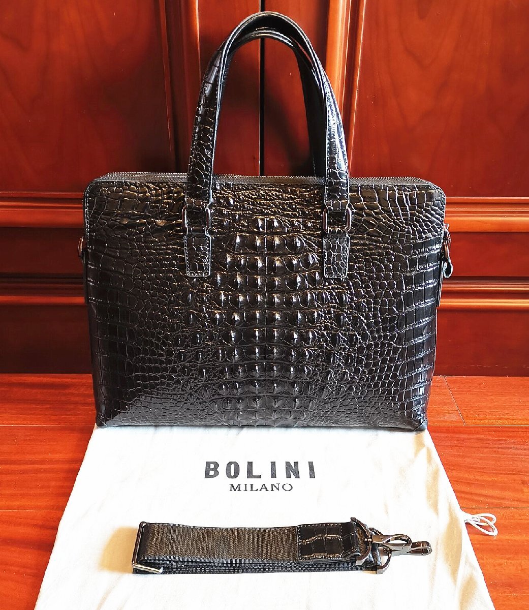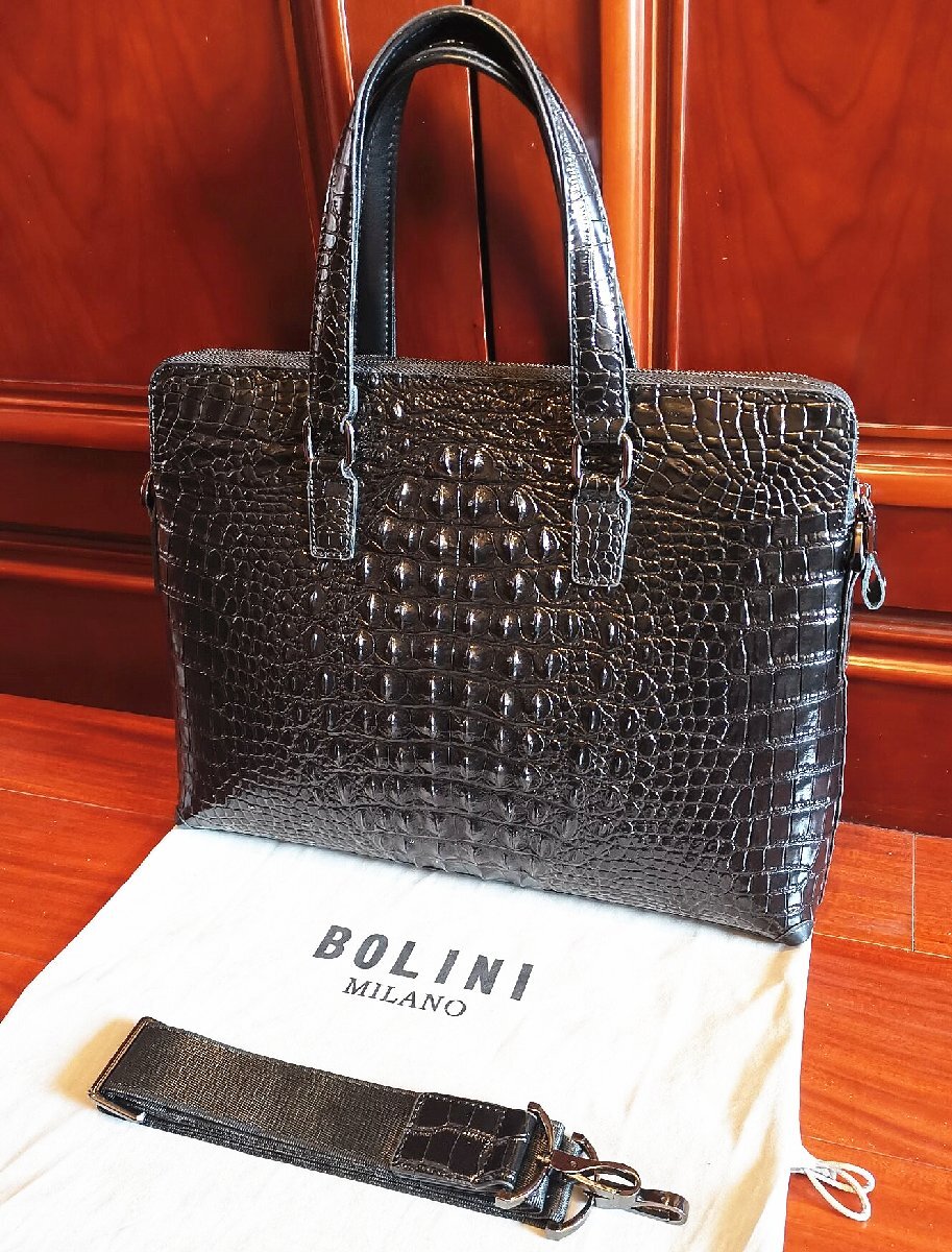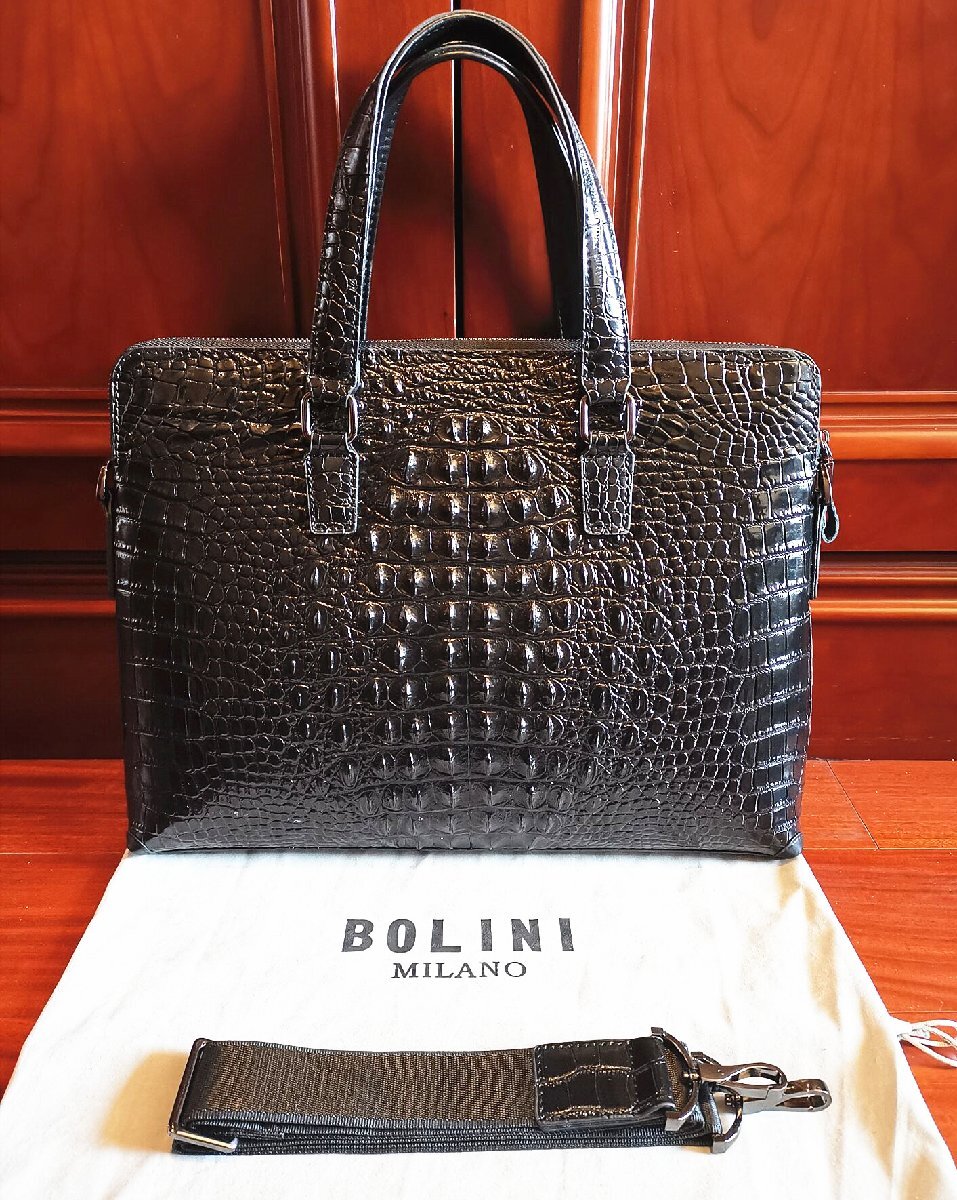 最高峰イタリアミラノ発・ボリニのビジネスバッグ。 これは本当に素晴らしい傑作です。本体には最上級牛革を使用し上品なクロコダイル型押し仕上げしております。革ライクな表情を持ちながら、長く愛用できる一品。多くのファンから支持されている傑作です。