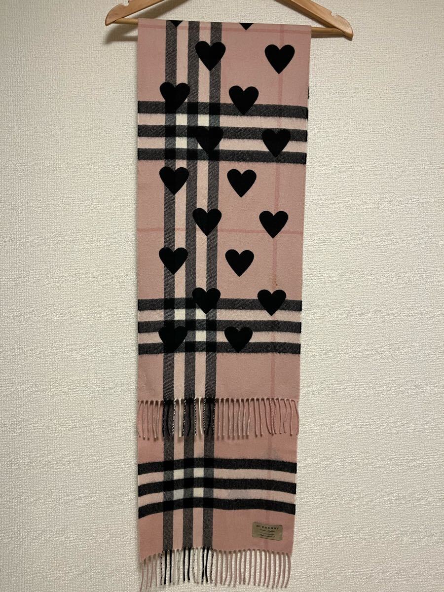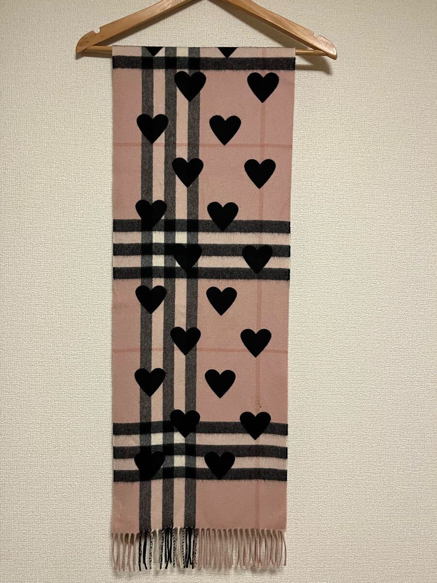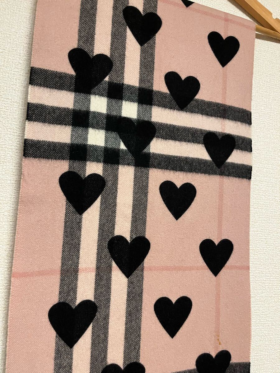 バーバリーカシミヤ100% マフラー ハートブラック ピンク系