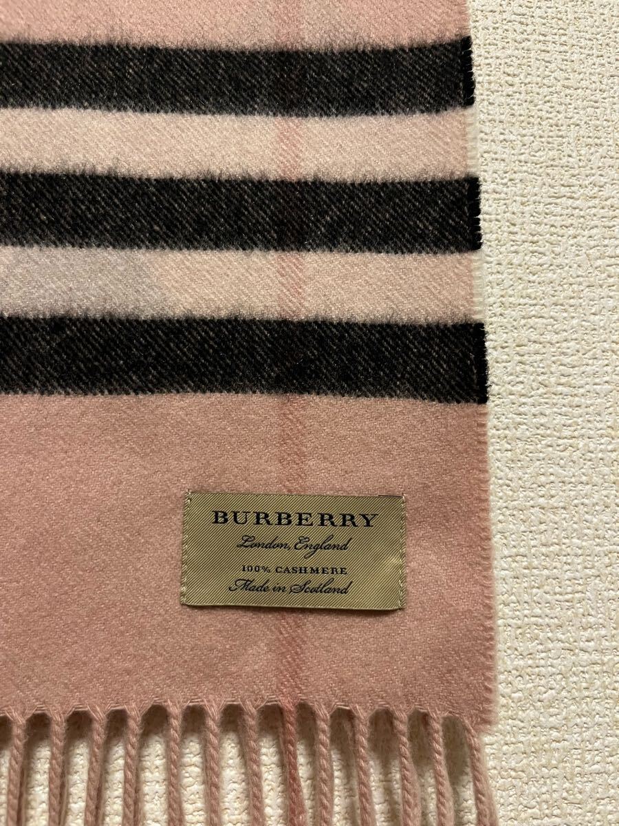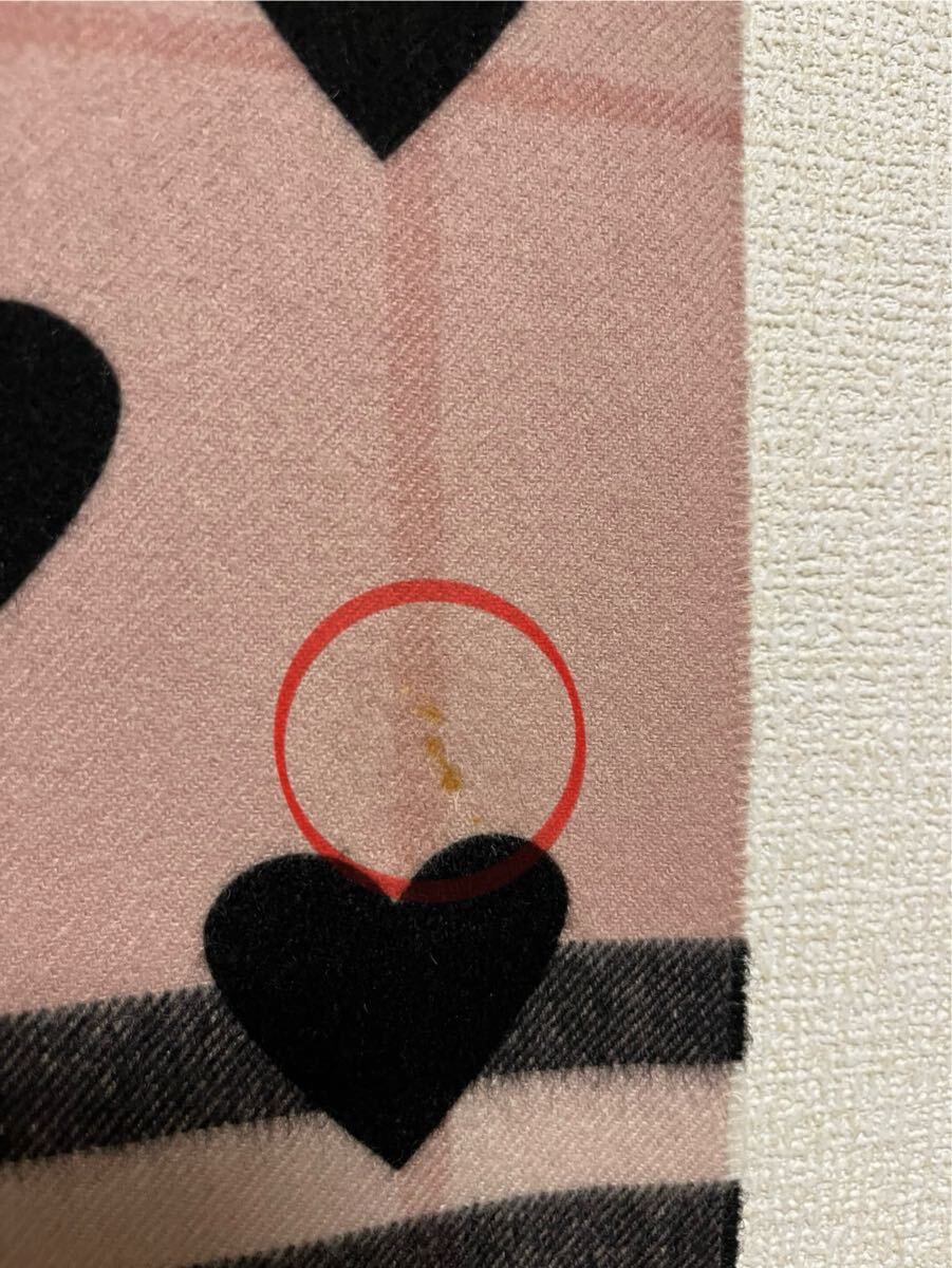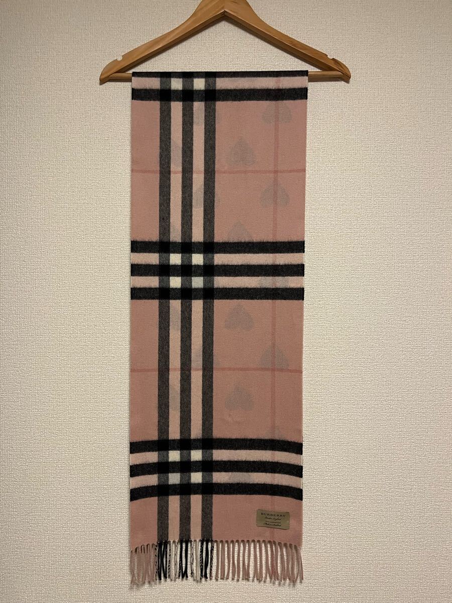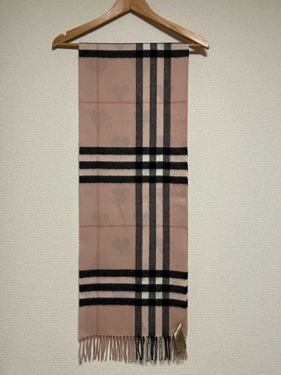 バーバリーカシミヤ100% マフラー ハートブラック ピンク系