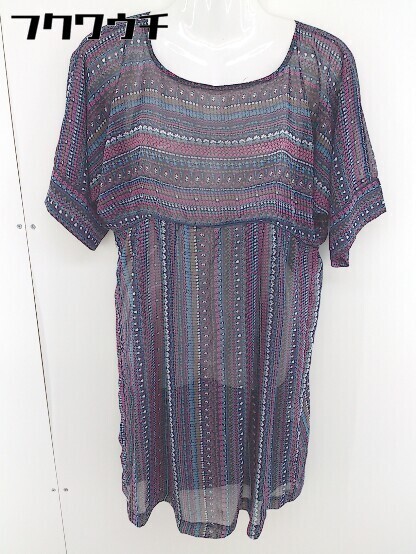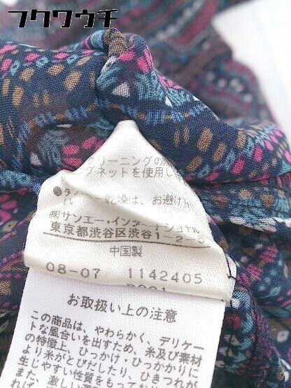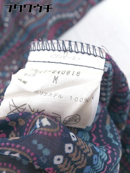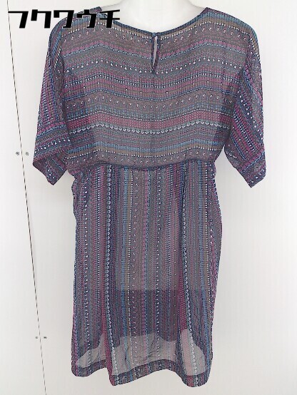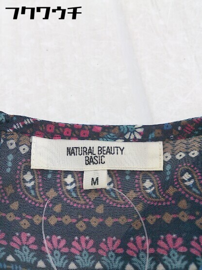 ◇ NATURAL BEAUTY BASIC 総柄 五分袖 膝丈 ワンピース サイズM ネイビー マルチ レディース