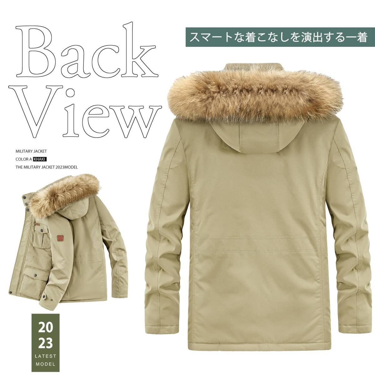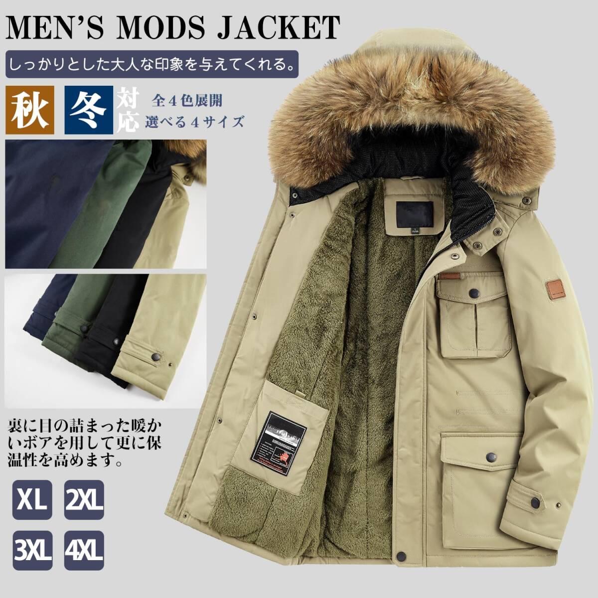 新品★メンズ モッズコート ミリタリージャケット 裏ボア フード付き ブルゾン 防寒着 作業着 厚手 防風 暖かい アウトドア カーキM