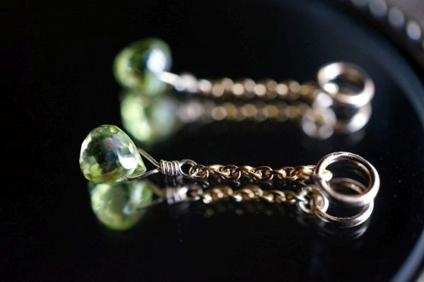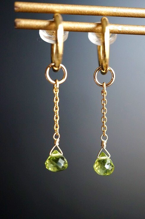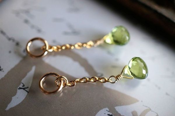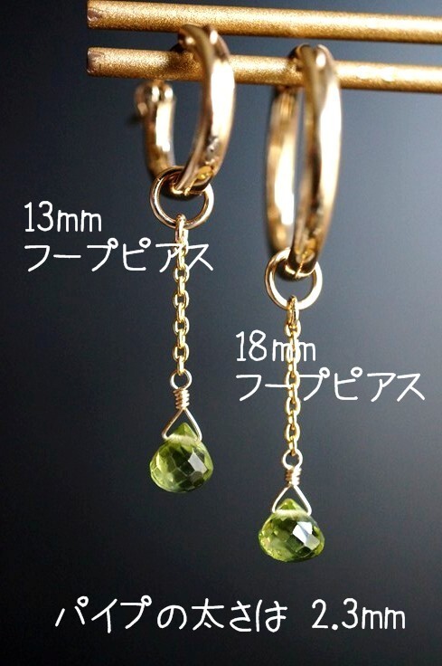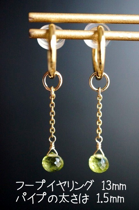 【フープ用チャーム】K14GF789 ペリドット チャーム 1ペア /フープピアス・フープイヤリング・ピアリング ピアスチャーム