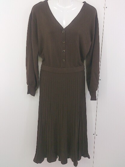 ◇ MOUSSY マウジー ニット 長袖 膝下丈 ワンピース サイズF ダークブラウン レディース