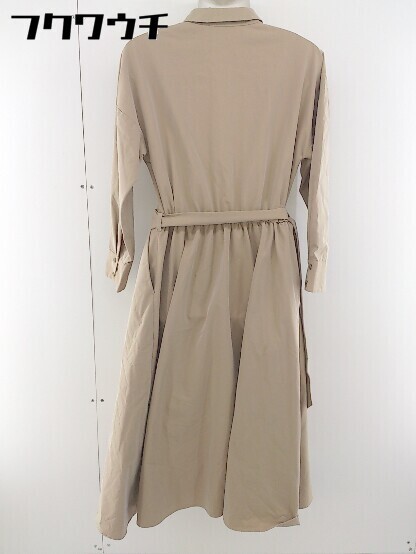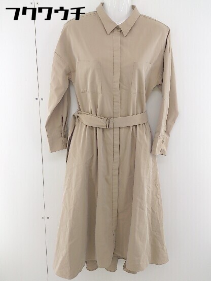 ◇ ◎ Demi-Luxe BEAMS デミルクス ビームス ベルト付 長袖 ロング ワンピース サイズ36 ベージュ レディース