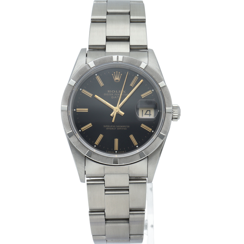 ロレックス オイスターパーペチュアルデイト 15210(S) 箱 保証書 SS メンズ時計 ブラック 仕上げ済 1993年 美品