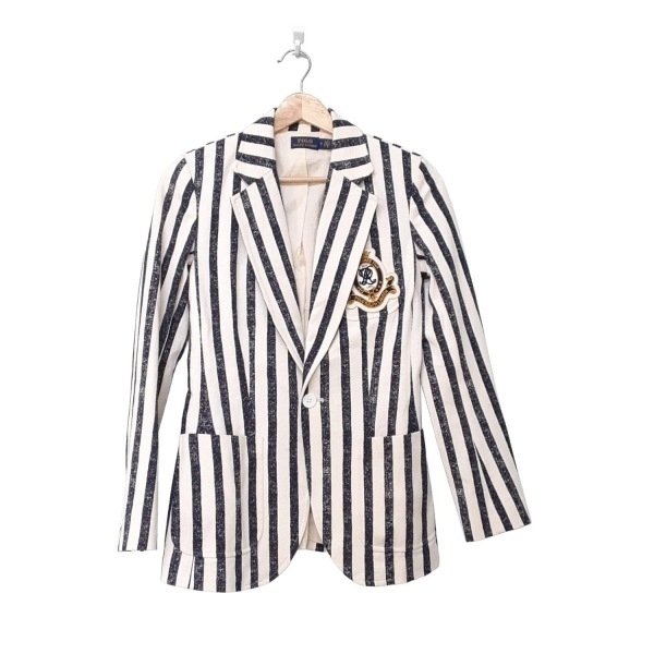 ポロラルフローレン POLObyRalphLauren サイズ150/80A - アイボリー×ネイビー レディース 長袖/ストライプ/春 ジャケット