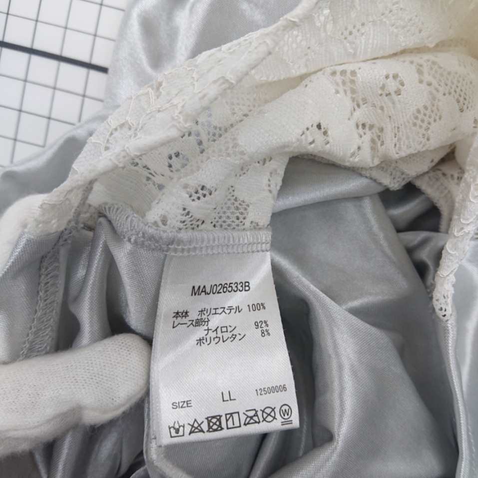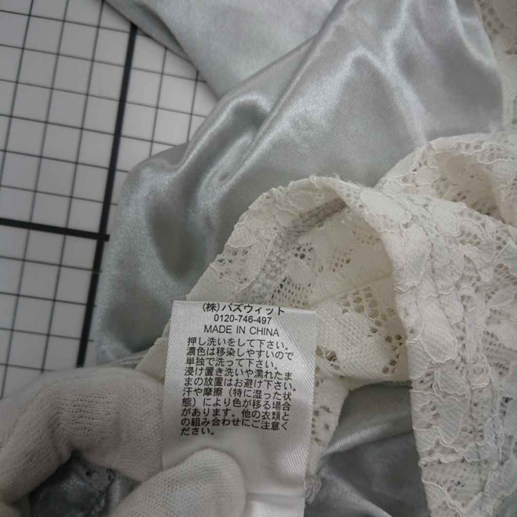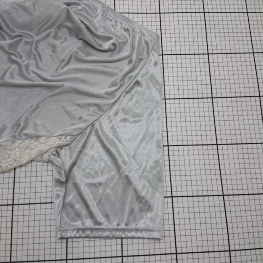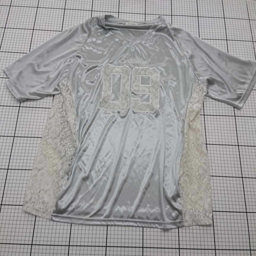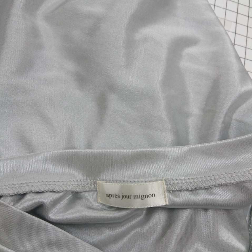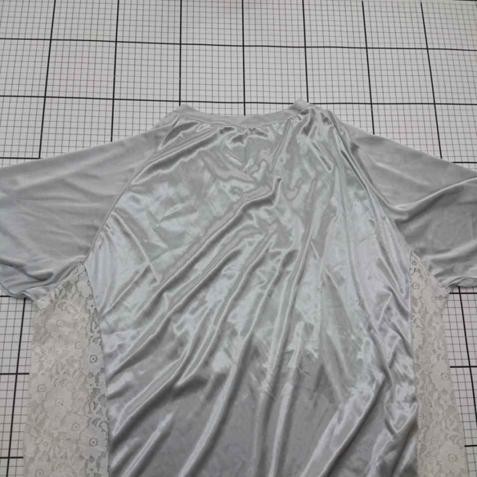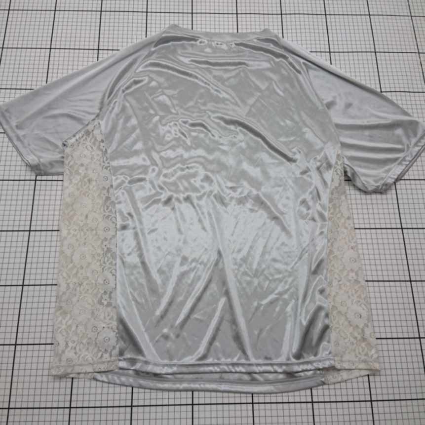 ◇ ⊂ アプレジュールミニョン 光沢加工 半袖 Vネック半袖シアーシャツ サイズLL シルバー系 レディース E