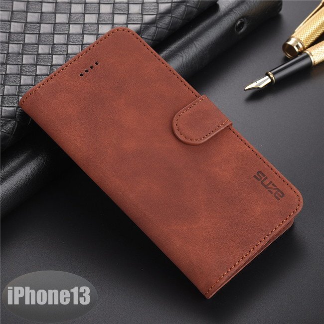 iPhone13 ケース PUレザー おしゃれ スマホケース スマホカバー ブラウン 耐衝撃 衝撃吸収【n276】