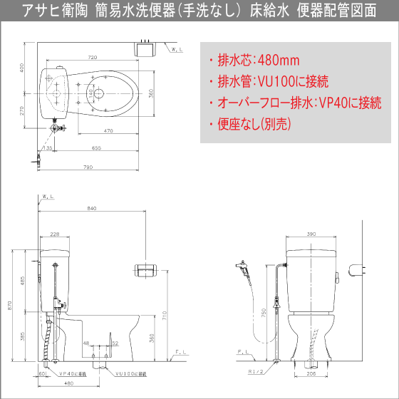 ★ アサヒ衛陶 簡易水洗便器 サンクリーン(手洗なし) 便座なし ★