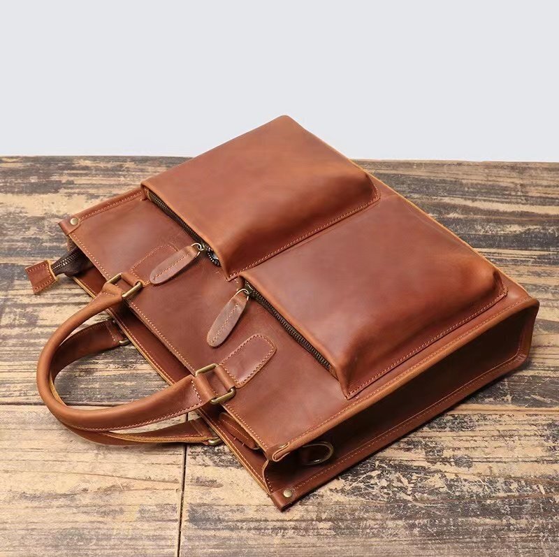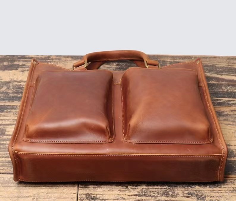 高品質★職人手作り 手染め ヌメ革 ハンドメイド メンズ 本革 ビジネスバッグ ブリーフケース 牛革 レザー 通勤鞄 手提げバッグ 出張