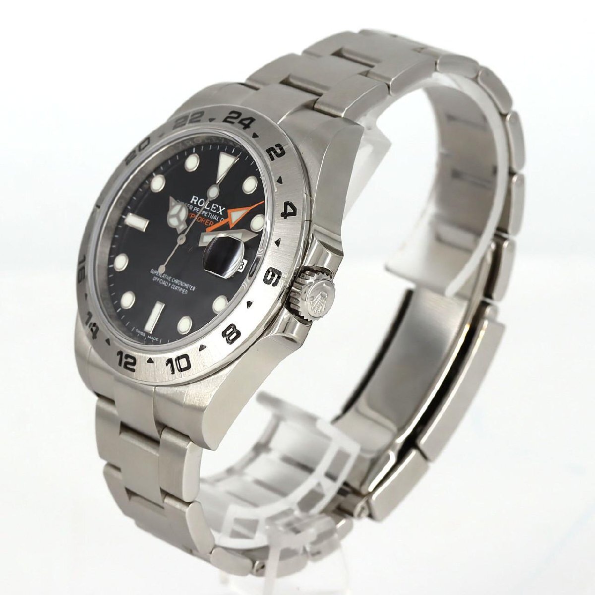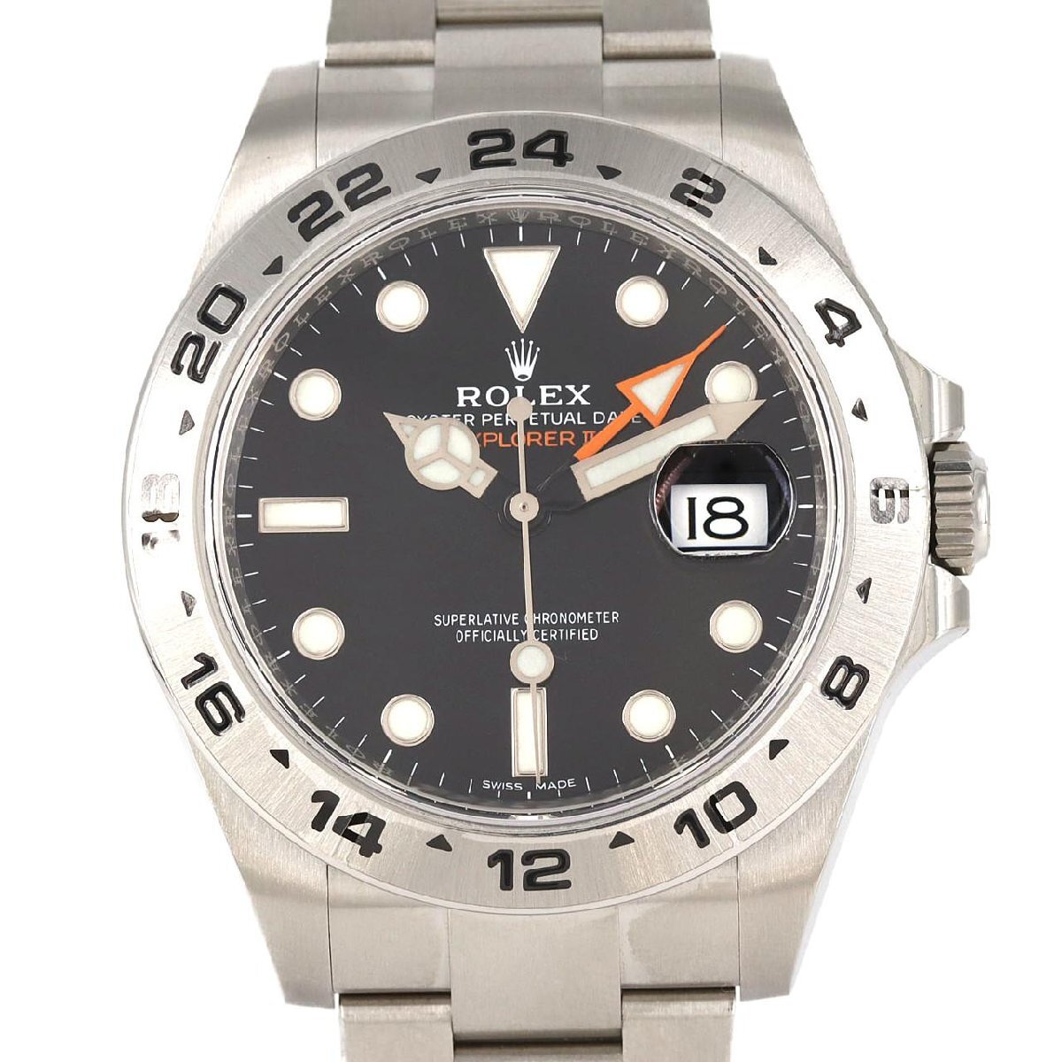 エクスプローラーIIの誕生40周年を記念し、2011年から2021年まで生産された一本。初代モデル(Ref.1655)を彷彿とさせる、アイコン的なオレンジ色の24時間針が最大の特徴です。ケース径は先代の40mmから42mmへと大型化され、力強い存在感を放ちます。ムーブメントには耐磁・耐衝撃性に優れた自社製キャリバー3187を搭載。ブレスレットは堅牢な3連オイスター仕様です。ロレックスの探検家精神を現代に伝える、実用性とデザイン性を両立した人気モデルです。