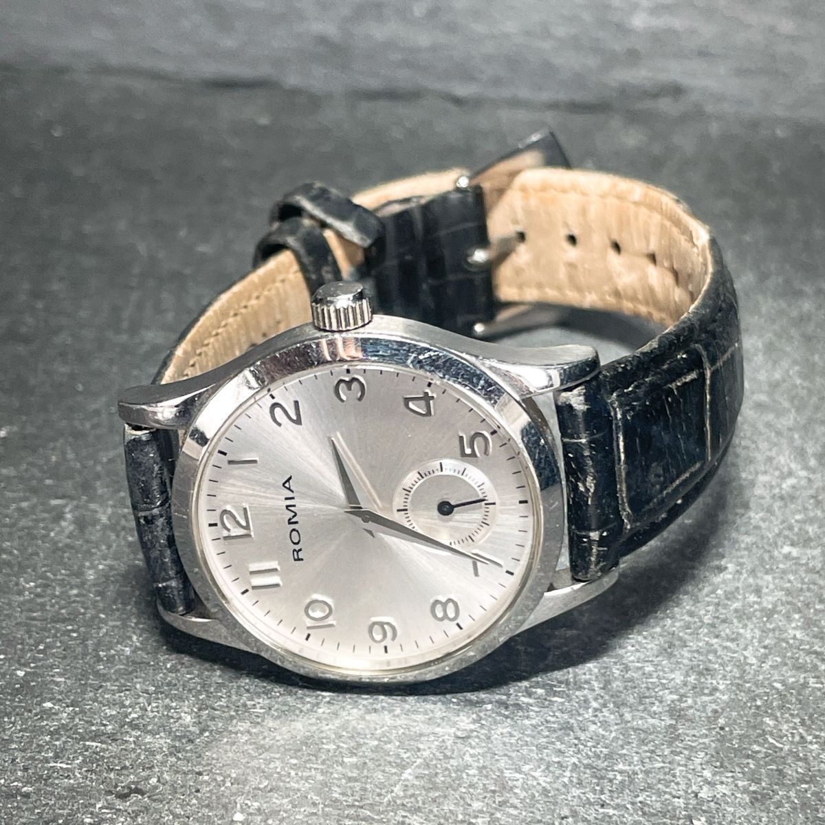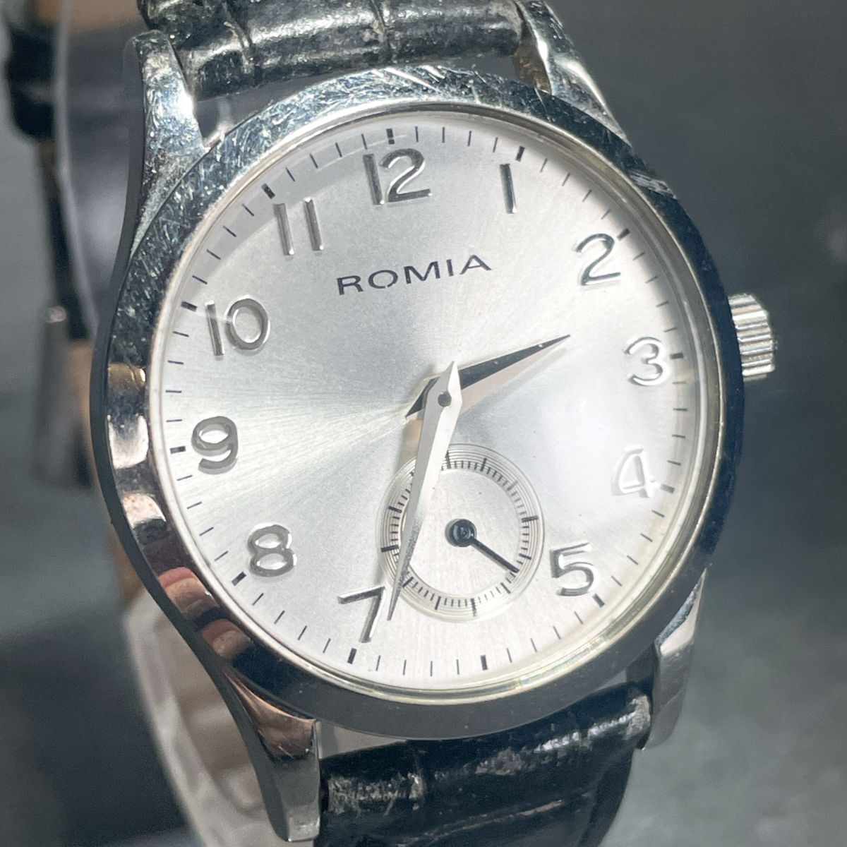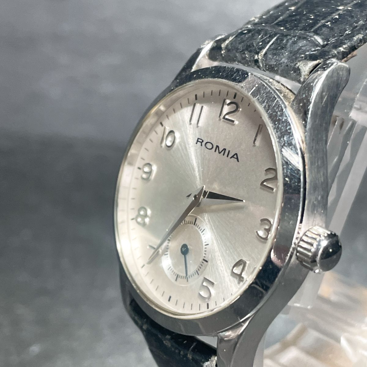 美品 ROMIA ロミア RM-102M 腕時計 アナログ クオーツ 3針 スモールセコンド シルバー レザーバンド 新品電池交換済み 動作確認済み