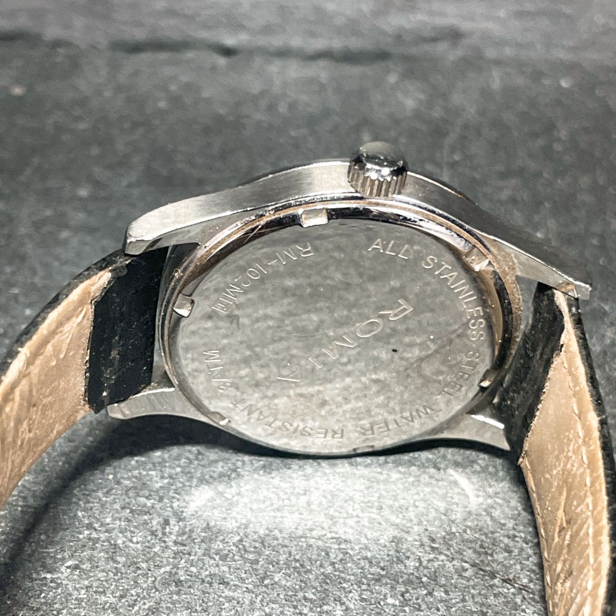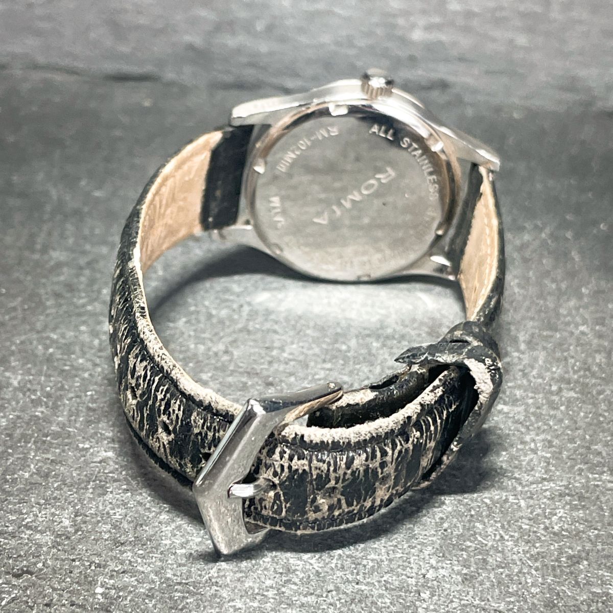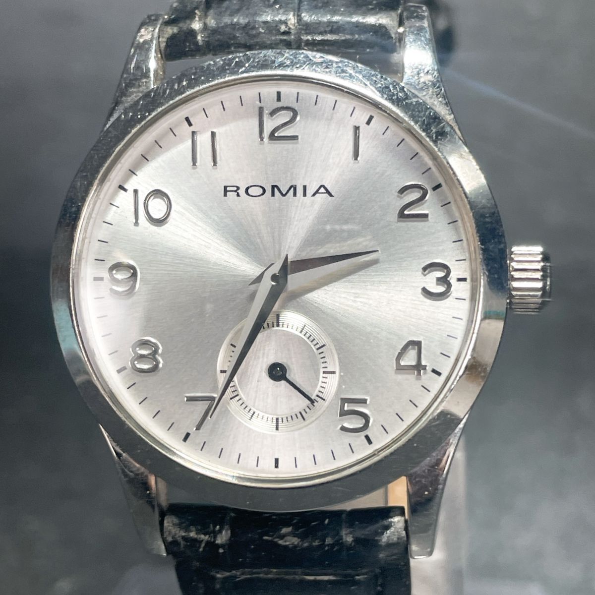 美品 ROMIA ロミア RM-102M 腕時計 アナログ クオーツ 3針 スモールセコンド シルバー レザーバンド 新品電池交換済み 動作確認済み