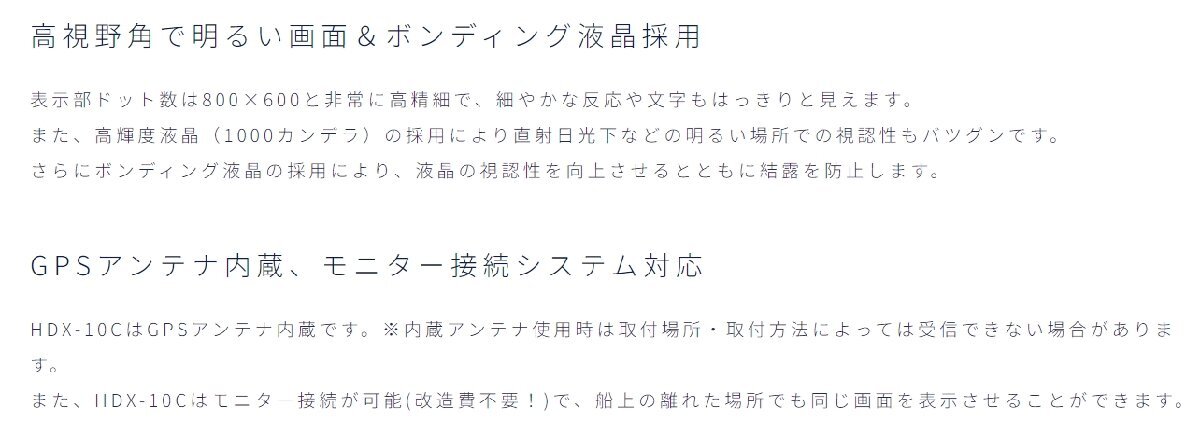 また、HDX-10Cはモニター接続が可能(改造費不要!)で、船上の離れた場所でも同じ画面を表示させることができます。