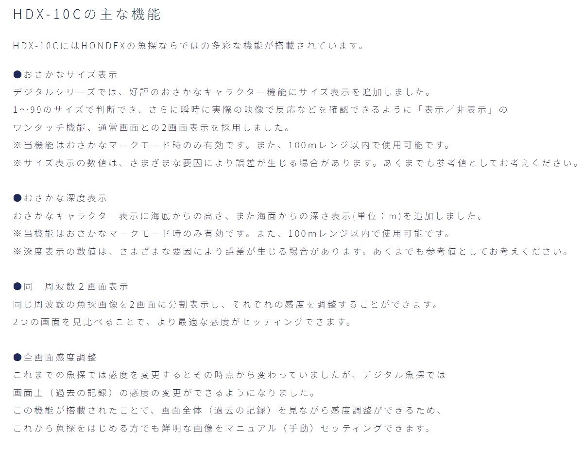 HDX-10CにはHONDEXの魚探ならではの多彩な機能が搭載されています。