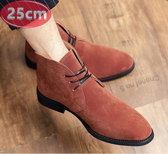 メンズ ビジネス PUレザー シューズ レッド 25.0㎝ 革靴 靴 カジュアル 屈曲性 通勤 軽量 インポート品【n154】