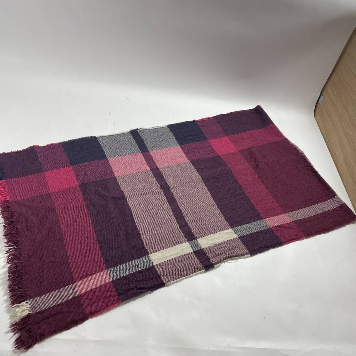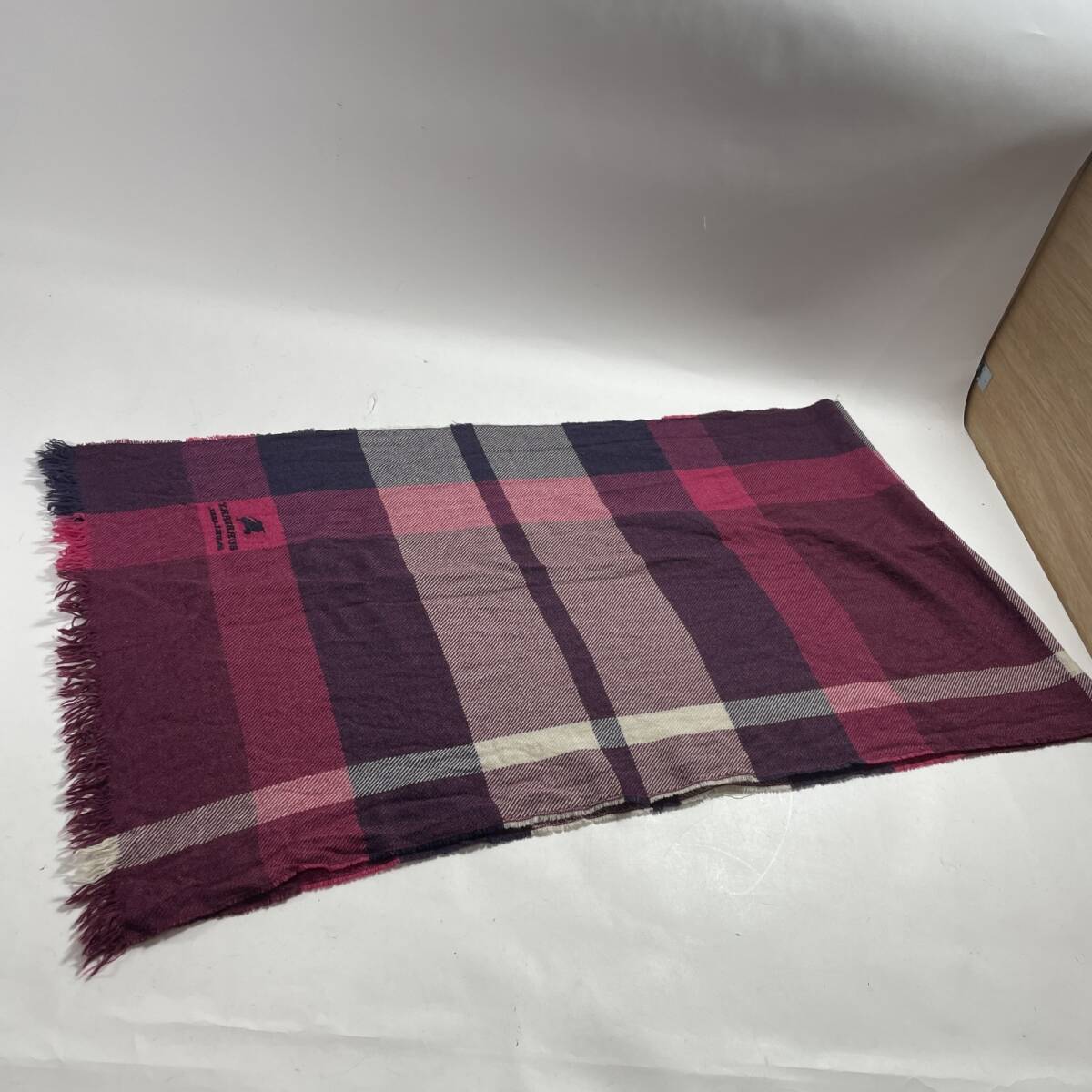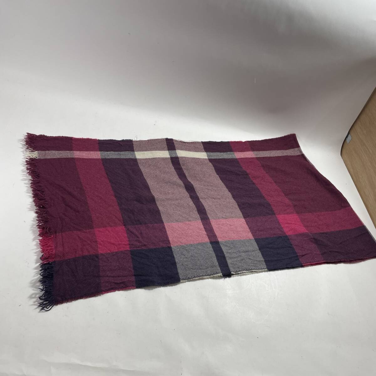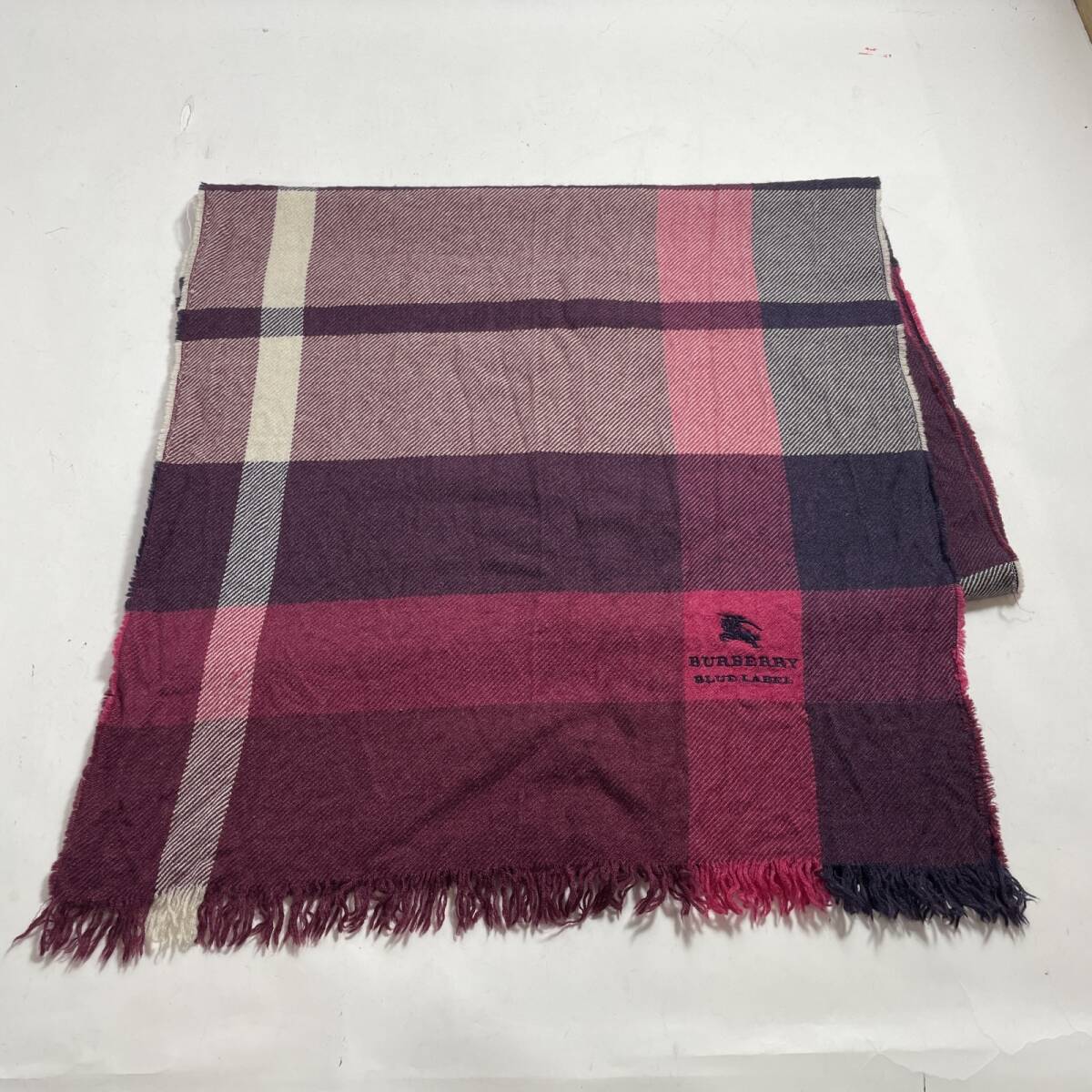 ★ BURBERRY BLUE LABEL バーバリーブルーレーベル ショール 大判ショール ストール マフラー チェック柄 赤系 レディース 現状品 0.15kg