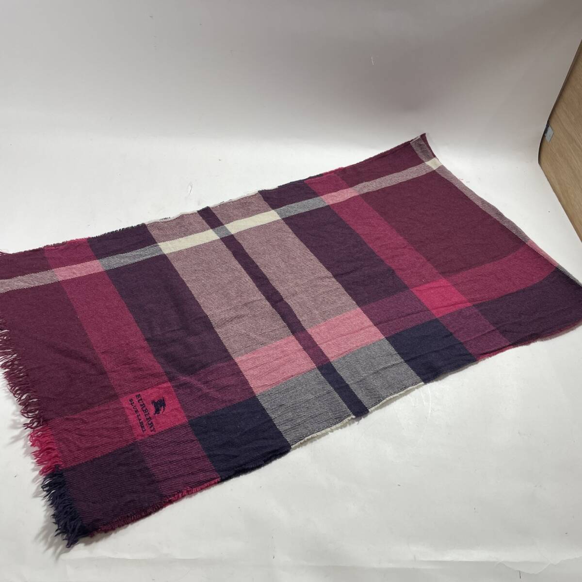 ・商品名★ BURBERRY BLUE LABEL バーバリーブルーレーベル ショール 大判ショール ストール マフラー チェック柄 赤系 レディース 現状品 0.15kg