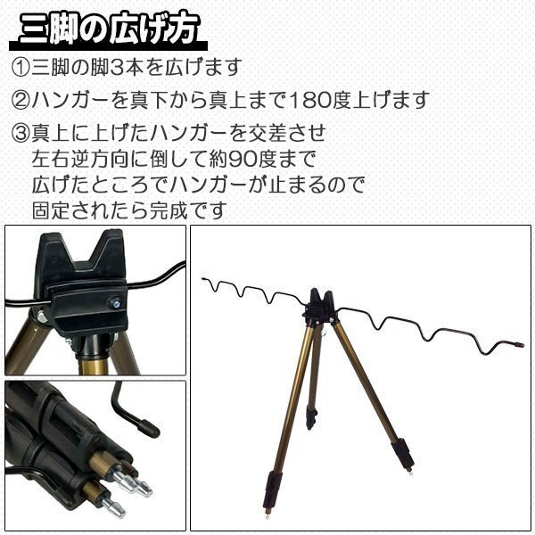 ロッドスタンド 竿立て ロッドホルダー 釣竿 釣具 釣り具 フィッシング 三脚 アルミ ミニ三脚 3段 ブラウン コンパクト