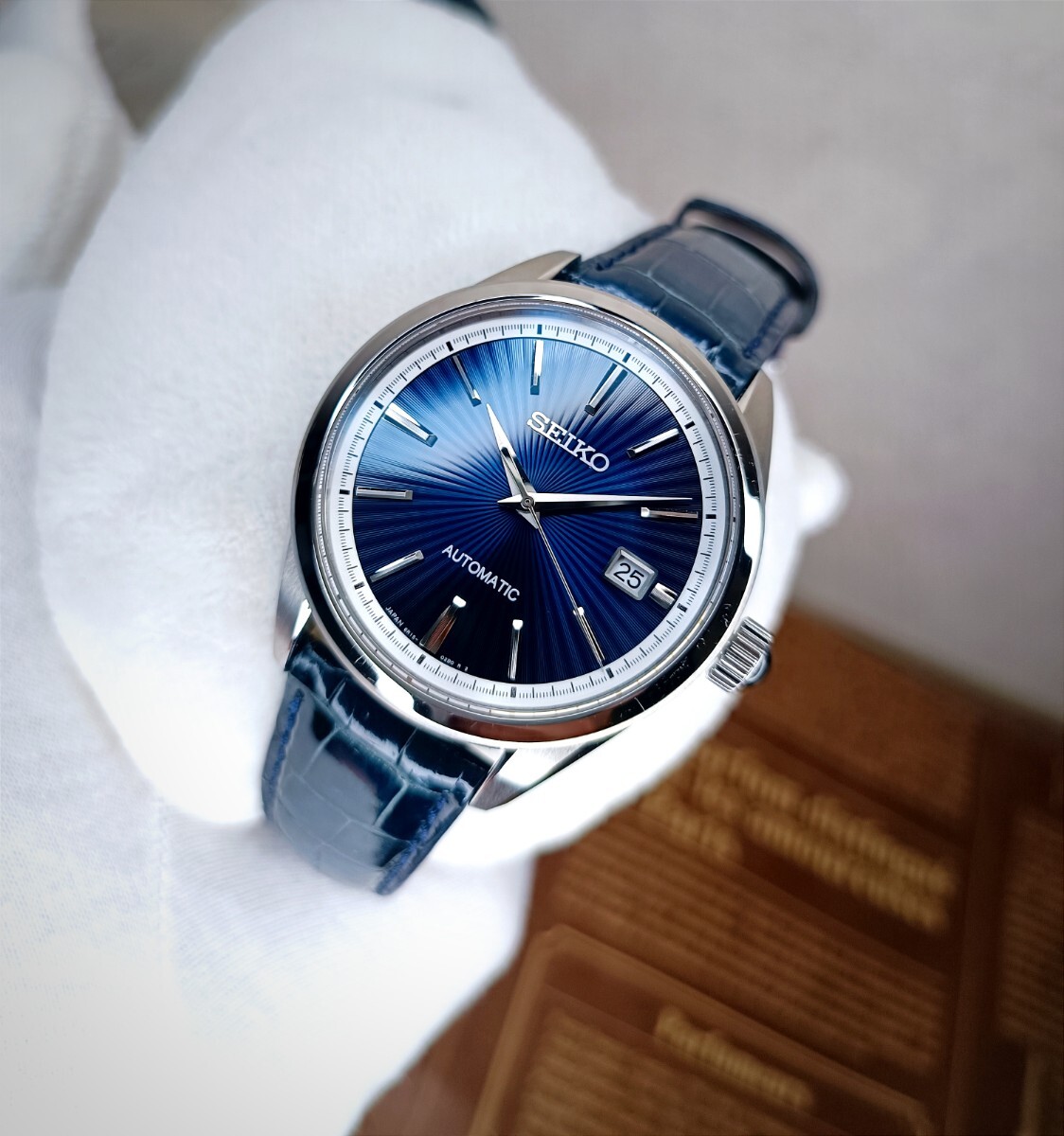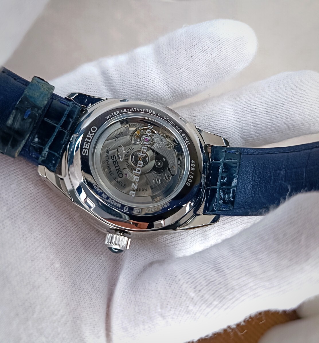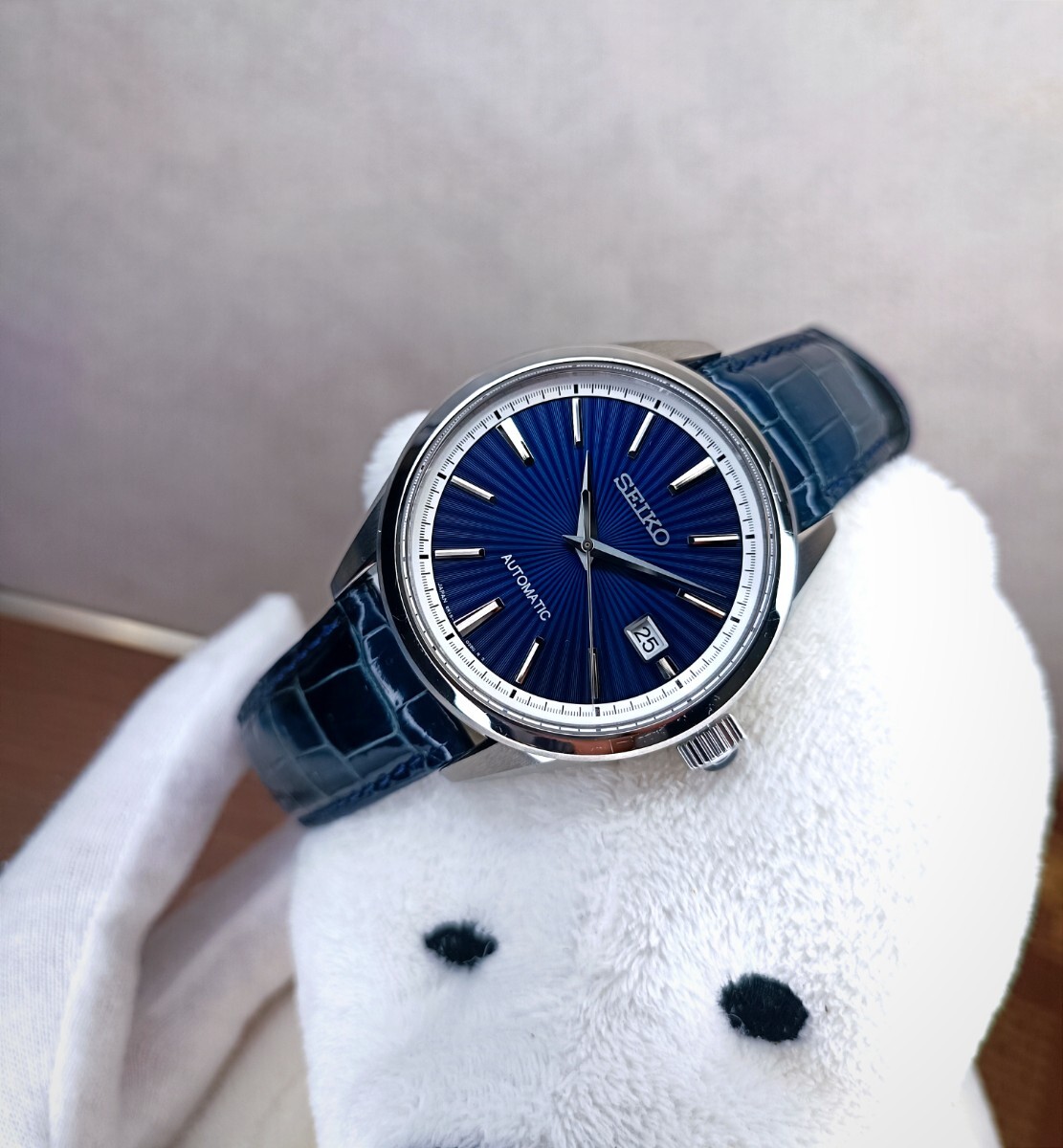 超キレ希少品セイコーブライツ BRIGHTZ × azabu tailor 麻布テーラーコラボレーション限定モデル SDGM007ブルー青文字盤メンズ自動巻き腕時計