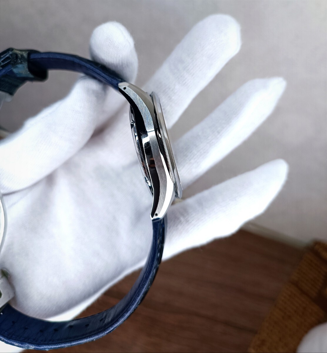 ケースに使用に伴ううっすらとした小傷がありますが、風防のサファイアガラスには傷は見当たらず、全体的には綺麗な状態です。