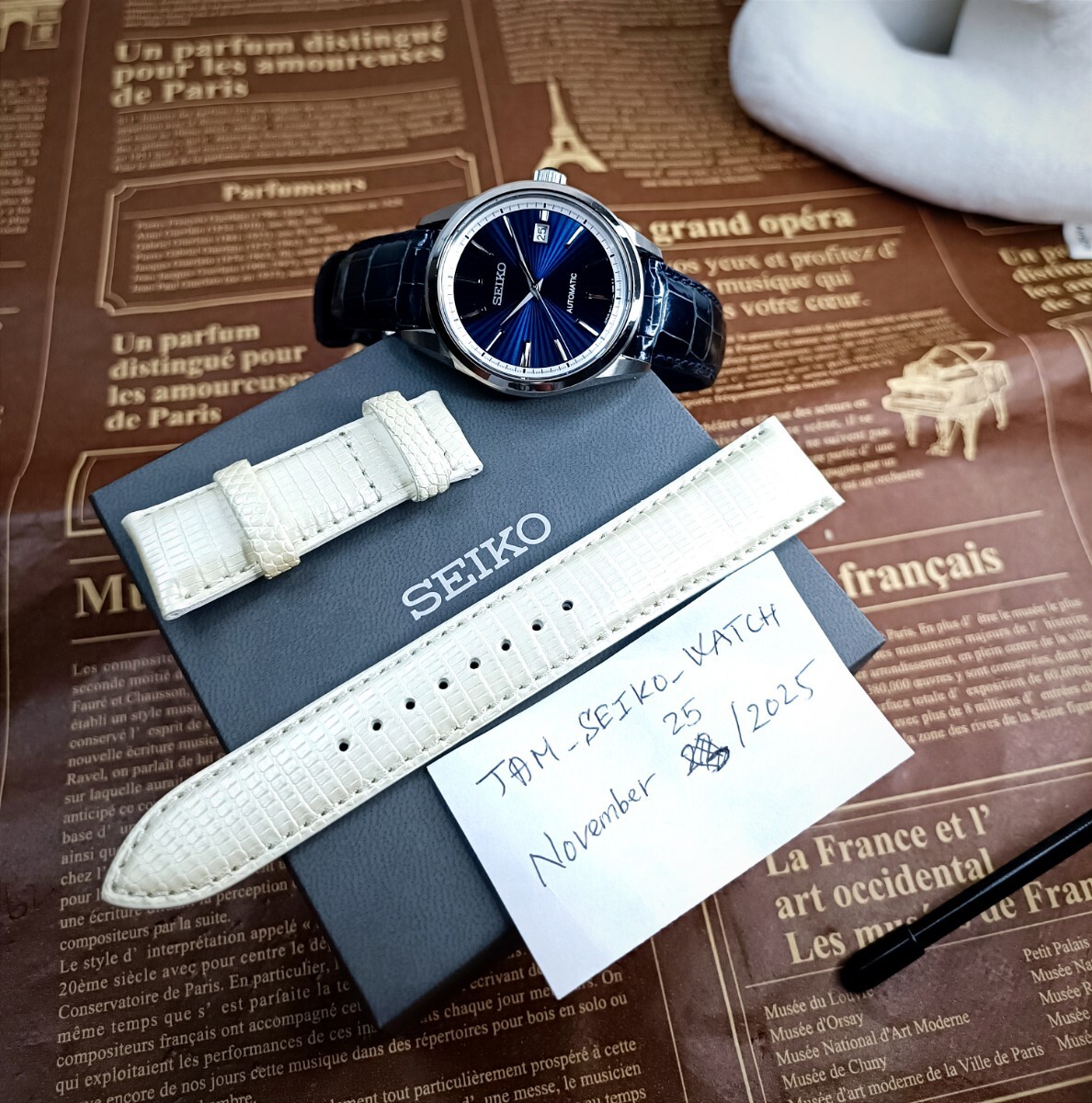 セイコーボックスとセイコーのオオトカゲ革のストラップ(純正品、未使用)をお付け致します。