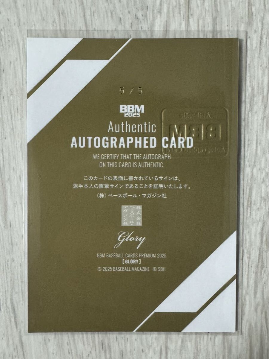 【シリアル・ラストNo】BBM 2025 glory 正木智也 5枚限定 直筆サインカード ソフトバンクホークス ※防水梱包発送