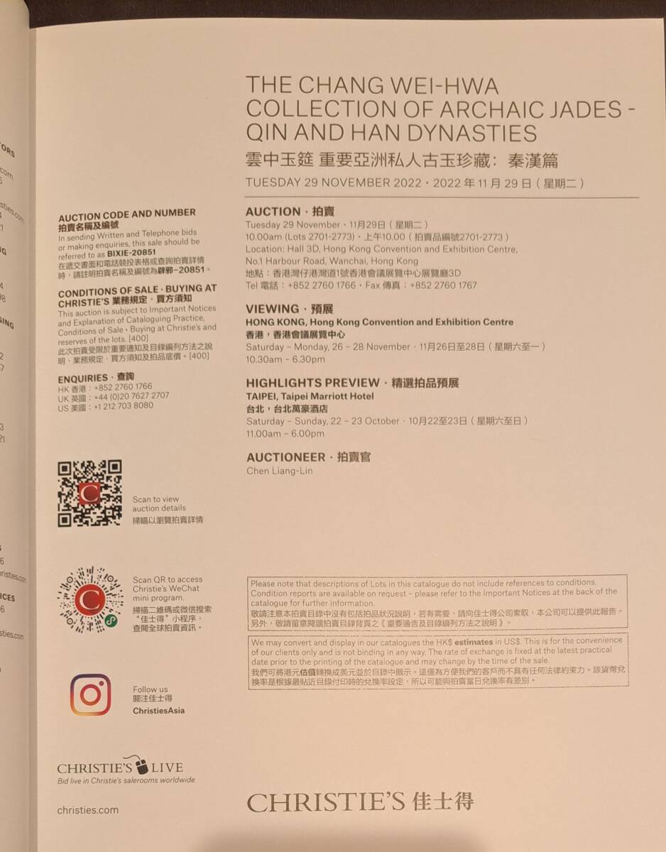 | タイトル | 中國青銅器・玉器オークションカタログ 雲中玉筵 古玉珍蔵 秦漢篇 2022年11月クリスティーズ HongKong 73点 |