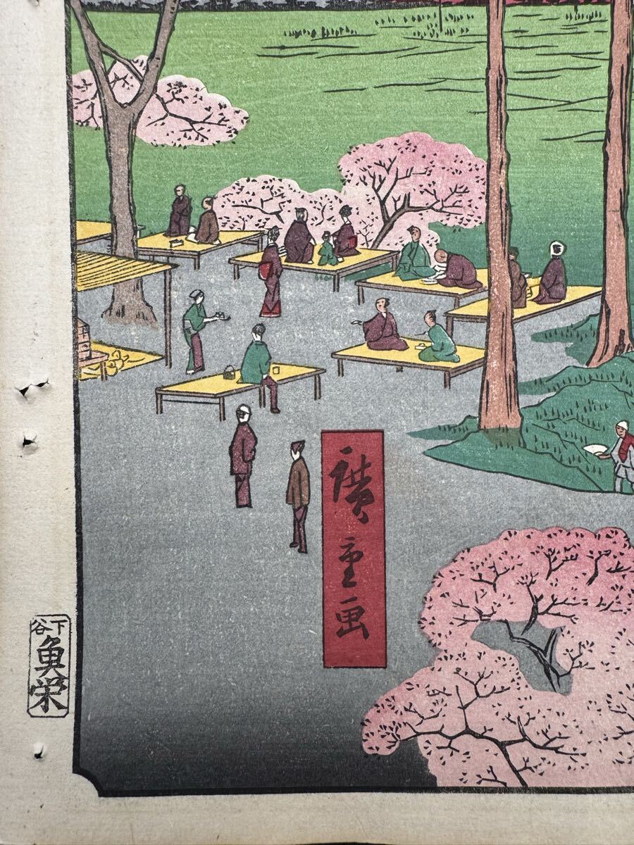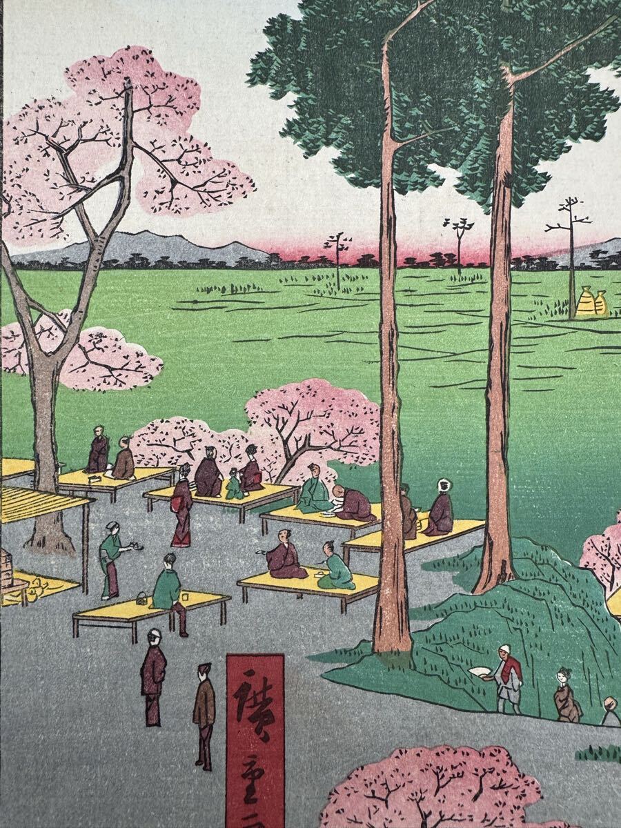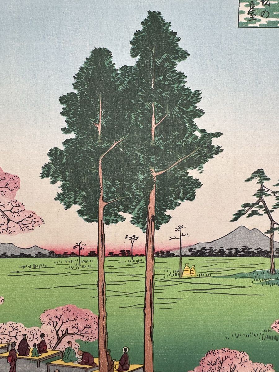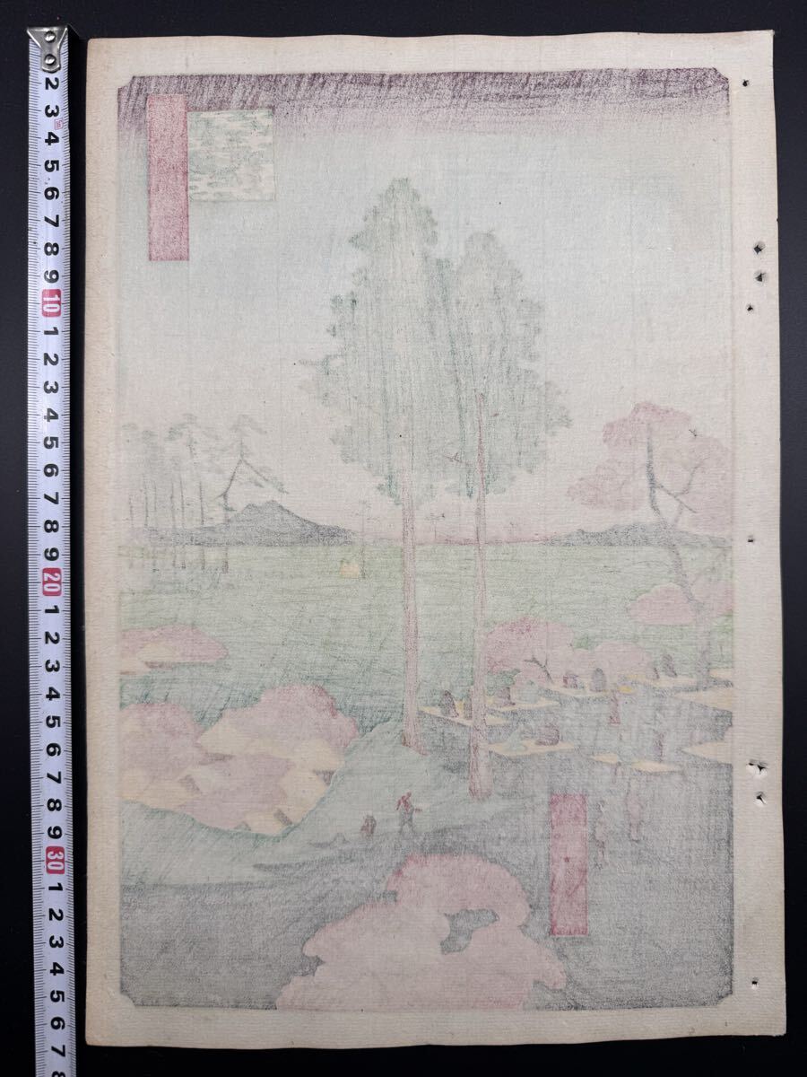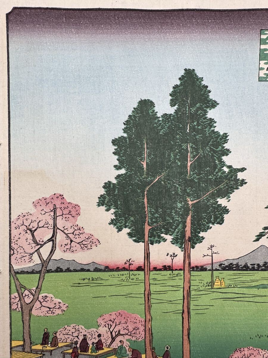 【真作】名作!本物浮世絵木版画 初代 歌川広重「名所江戸百景 日暮里諏訪の台」江戸期 名所絵 大判 錦絵 保存良い