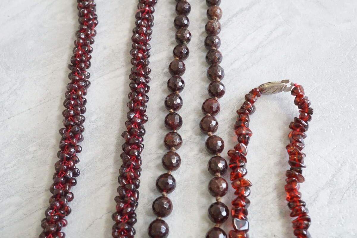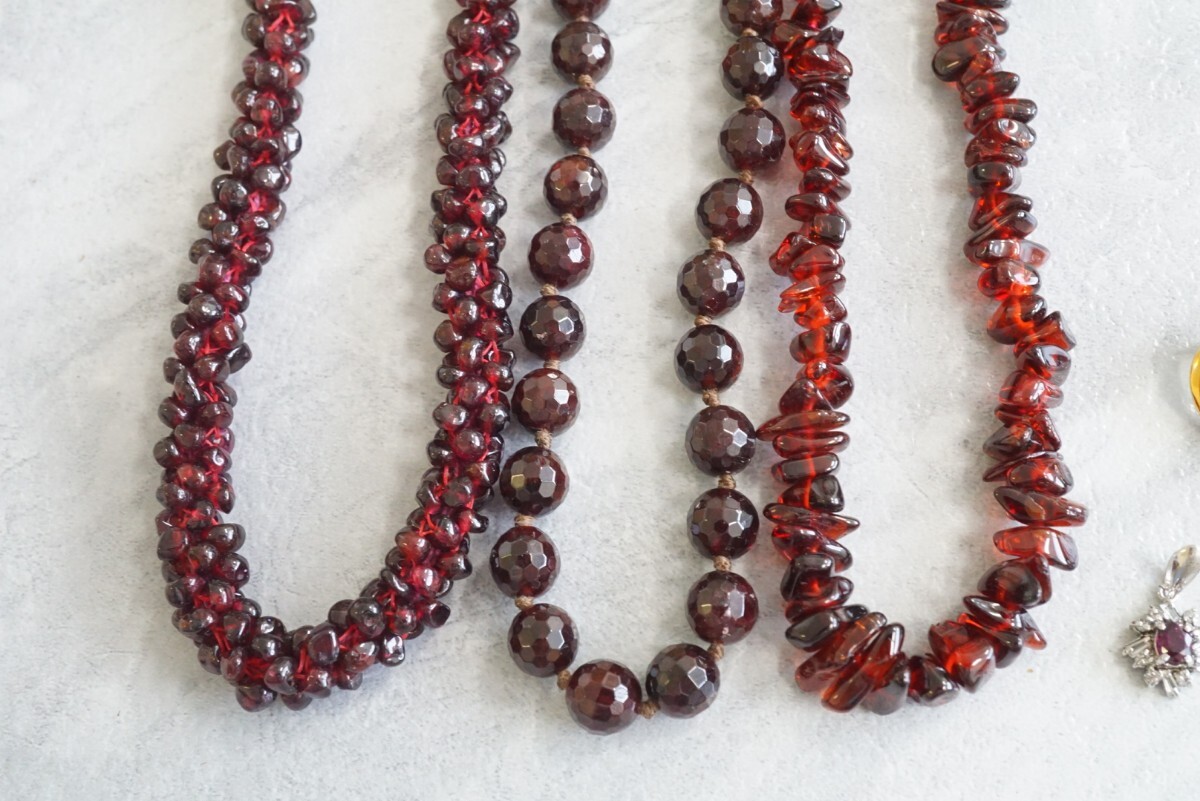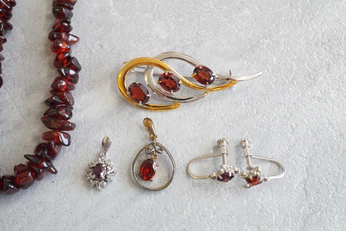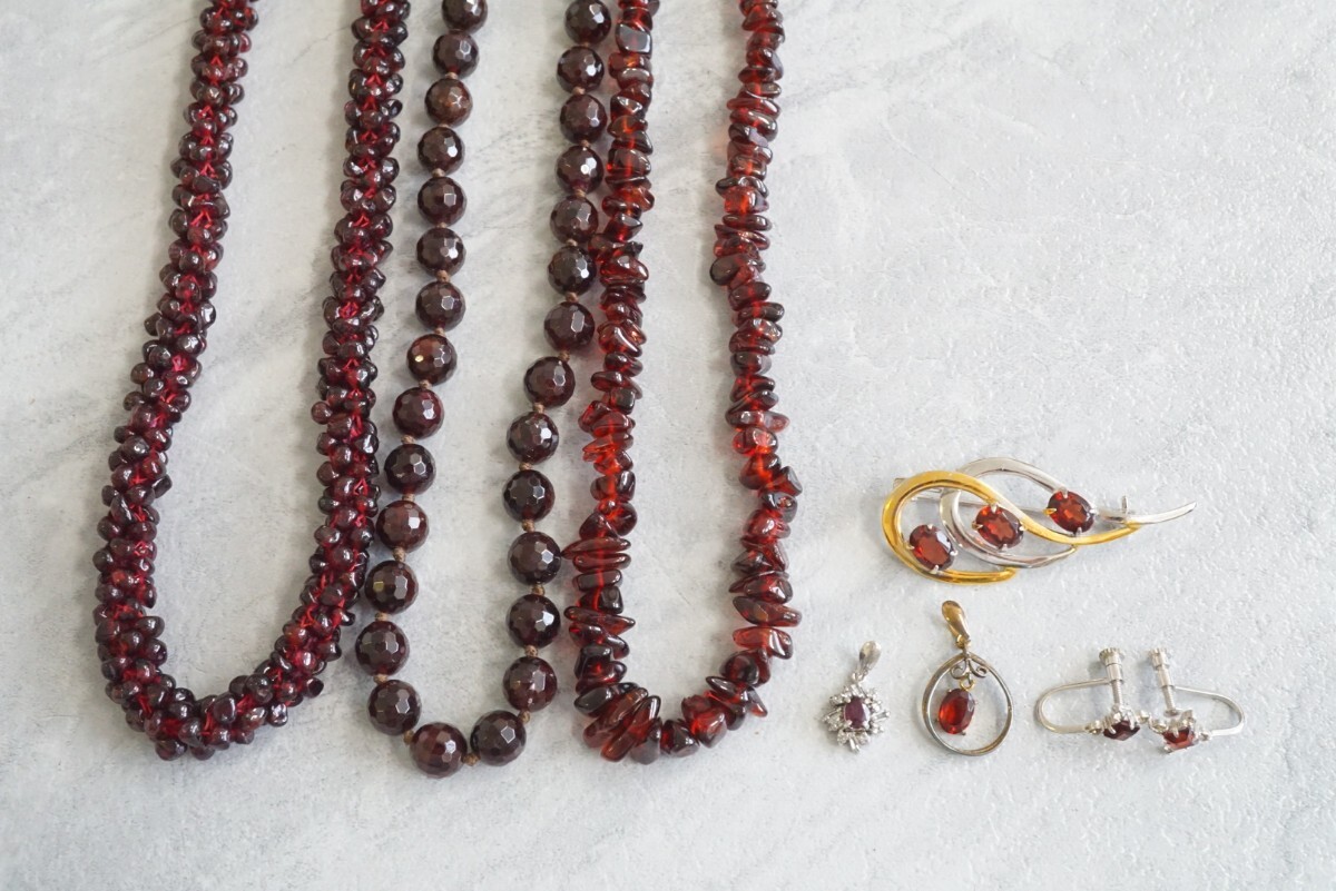 B186 ガーネット カラーストーン ネックレス ペンダント ブローチ イヤリング ヴィンテージ アクセサリー 大量 セット まとめて おまとめ