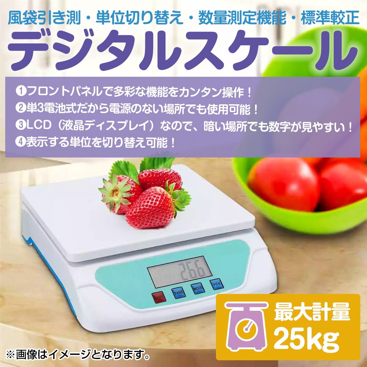 【送料無料】デジタル スケール 最大25kg 1g単位 風袋引き 単位切替 標準校正 多機能 キッチン クッキング 電子秤 量り お菓子作り 小型