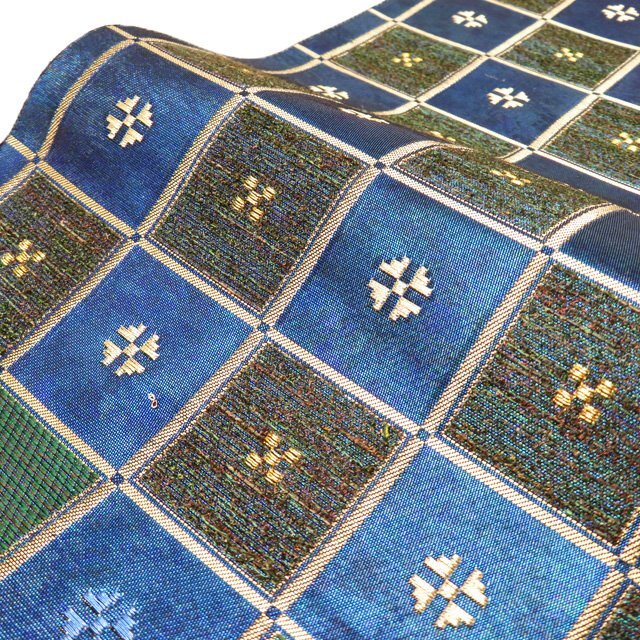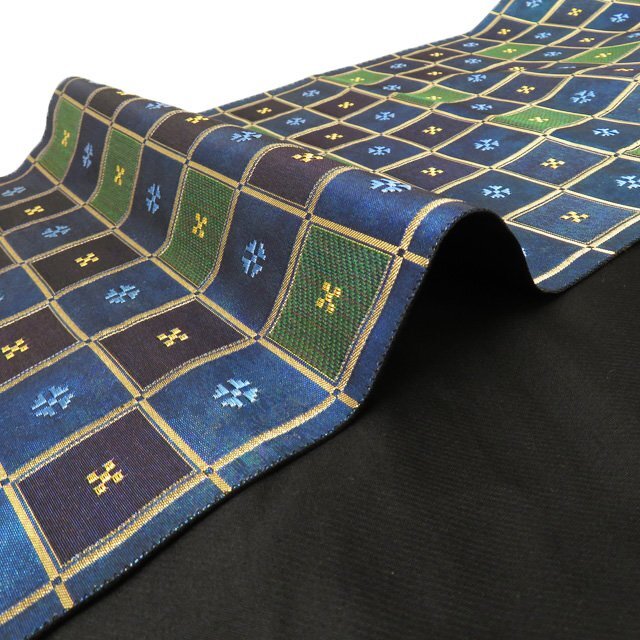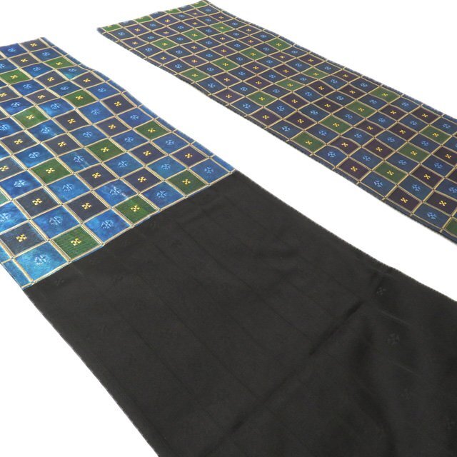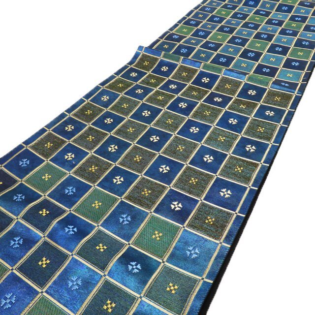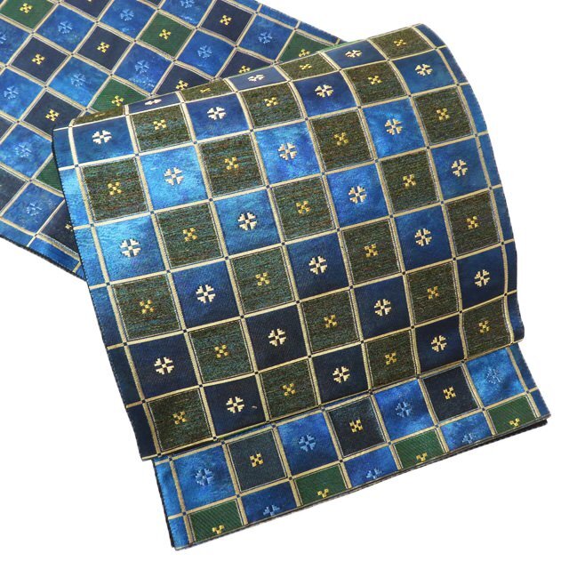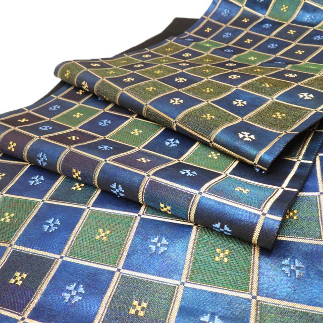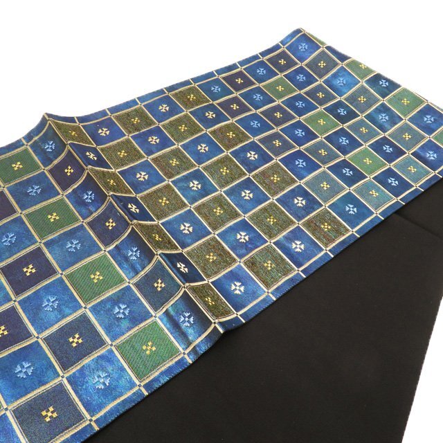 サイズ 436cm x 31cm 素材 正絹 商品ランク B お色 青系色 緑系色 金 たれ先口が二か所開いていますが、まだまだ問題なくご着用いただける美しいお品物です。 帯芯の入っていないお品物です。 写真に写っている帯のみの販売で、小物等の付属品はついておりません。 一部商品は実店舗・他サイトでも並行して販売しておりますので売り切れの際はご了承ください。 その他多数販売中 ru- | ||||||