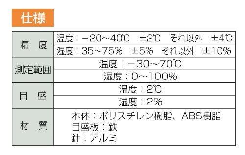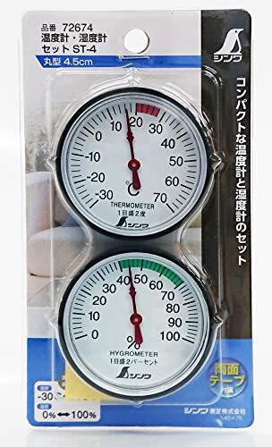 「シンワ測定(Shinwa Sokutei) 温度計 湿度計セット アナログ ST-4 丸型4.5cm 72674」▼4960910726741▼(商品説明)湿度計セット・ 72674・・Style:湿度計セット・(b)メーカー型番:(/b) 72674・(b)サイズ:(/b) 直径48×17mm・(b)質量:(/b) 11g・(b)材質:(/b) スチロール樹脂、ABS樹脂、アルミ・(b)精度:(/b) 温度計:-21度以下はプラスマイナス4度、-20~40度はプラスマイナス2度、41度以上はプラスマイナス4度、湿度計:34%以下はプラスマイナス10%、35~75%はプラスマイナス5%、76%以上はプラスマイナス10%●健康管理や省エネに役立ちます。●両面テープ付きなので、色々な所に貼り付けて使用できます。
