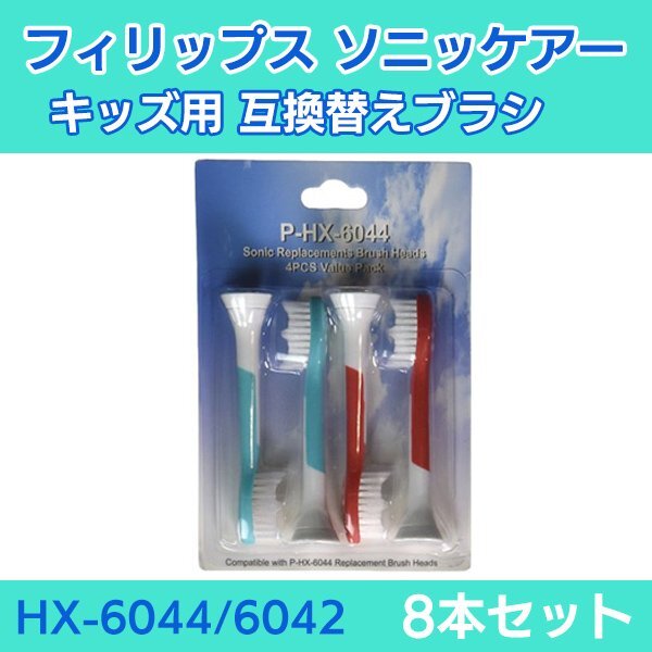 送料無料 PHILIPS フィリップス ソニッケア HX6044/HX6042 / 4本入りX2セット 8本 互換ブラシ for Kids ブラシヘッド ソニッケア 子供用