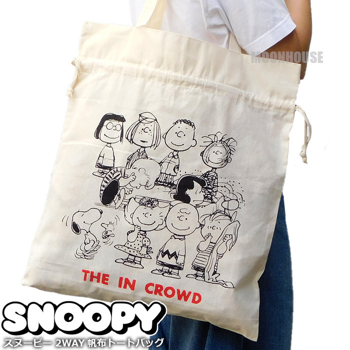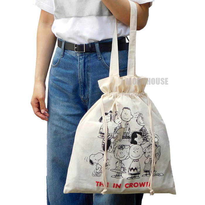 送料無料 スヌーピー 2WAY 帆布 巾着 トートバッグ レディース キッズ エコバッグ レッスンバッグ マザーズバッグ 手提げバッグ 新品 B□