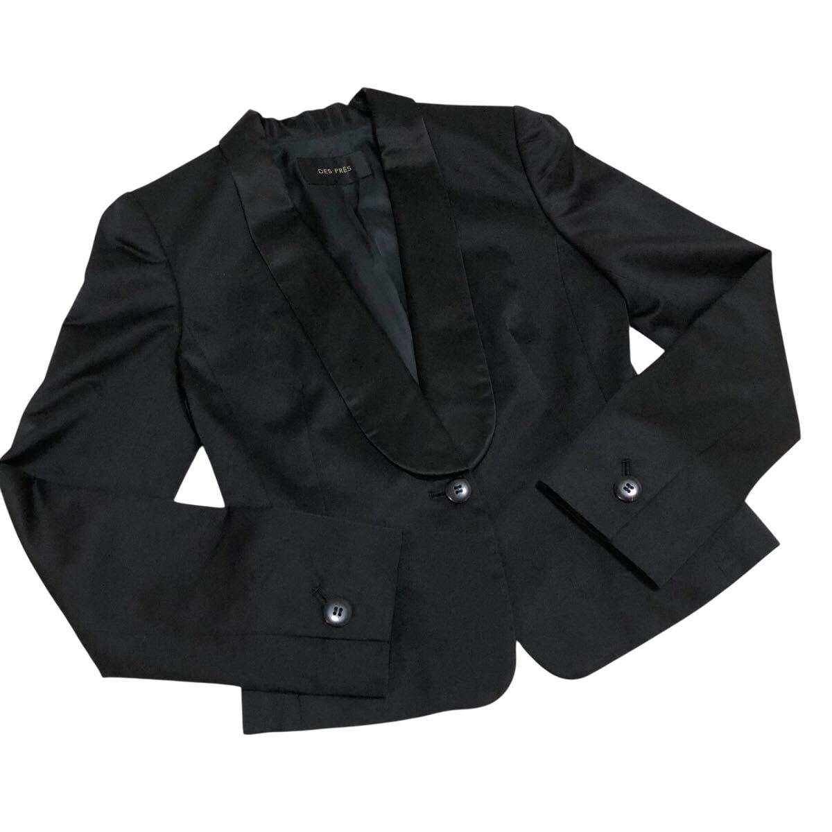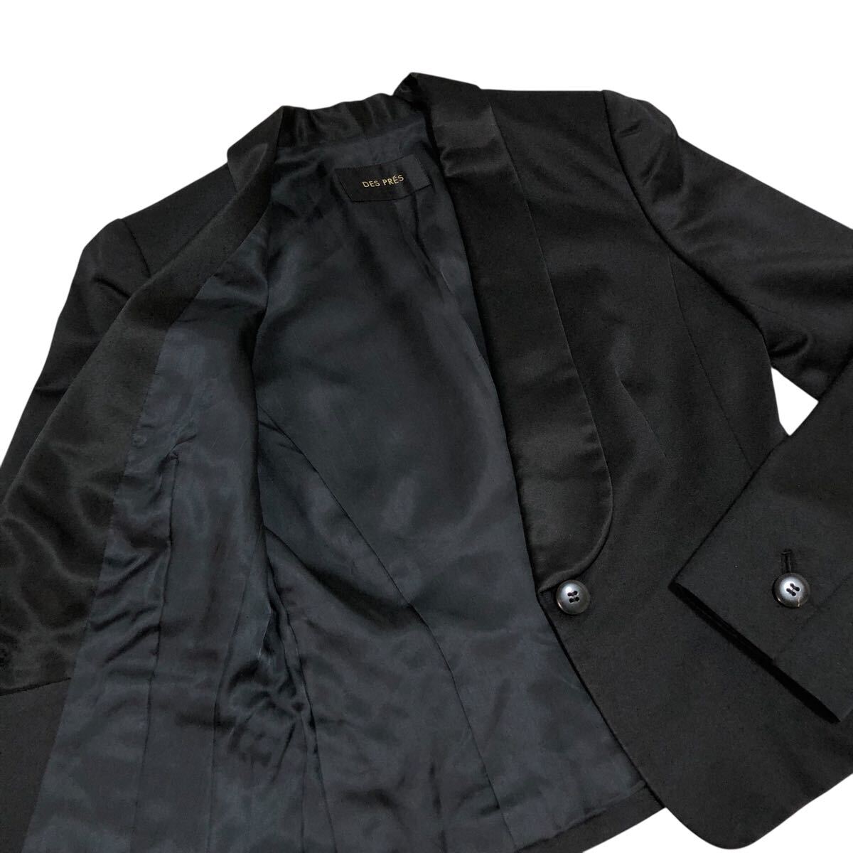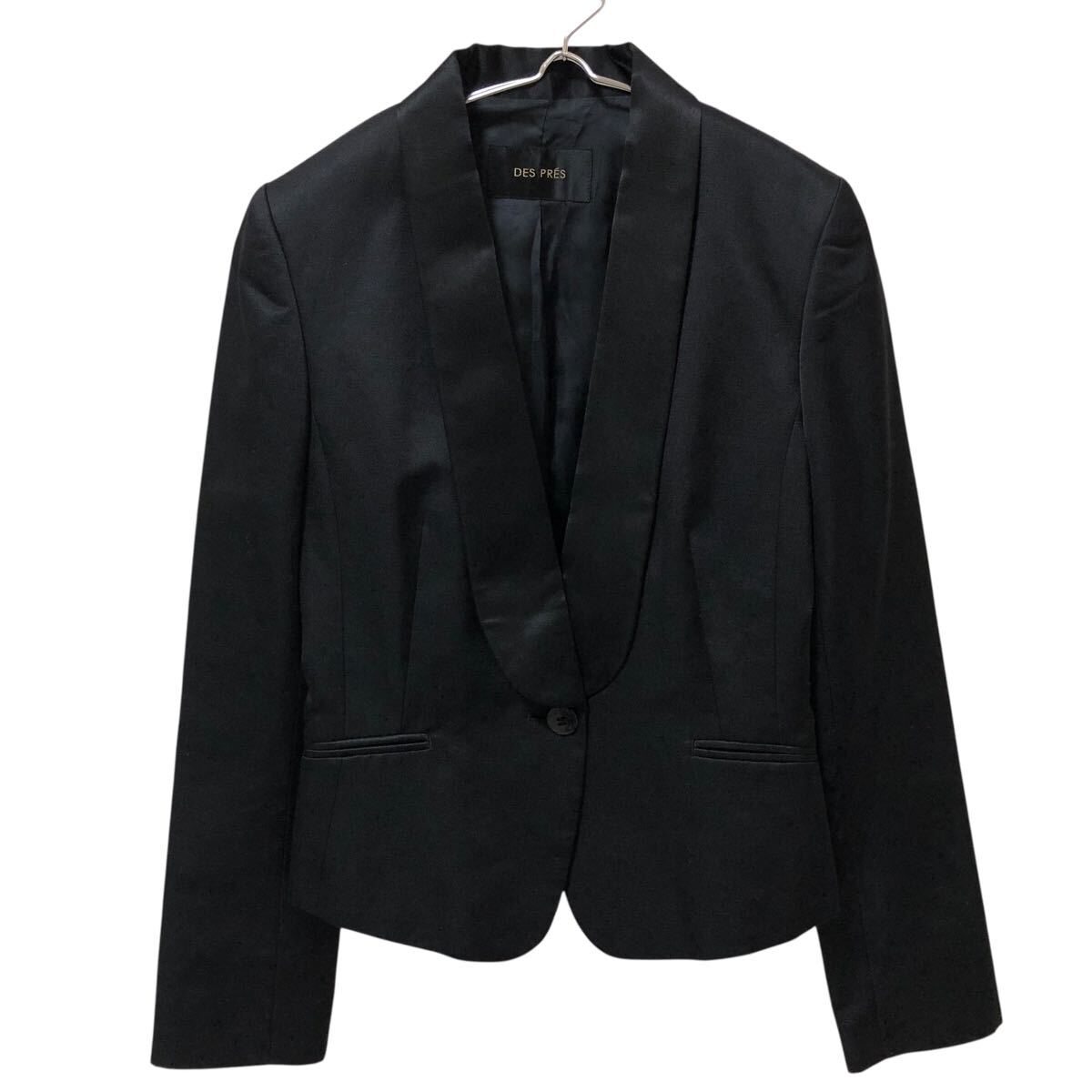 11NG015-27 良品 DES PRES デプレ シルク混 ジャケット トップス シングル 裏地 長袖 ボタン レディース 0 S相当 ブラック 黒