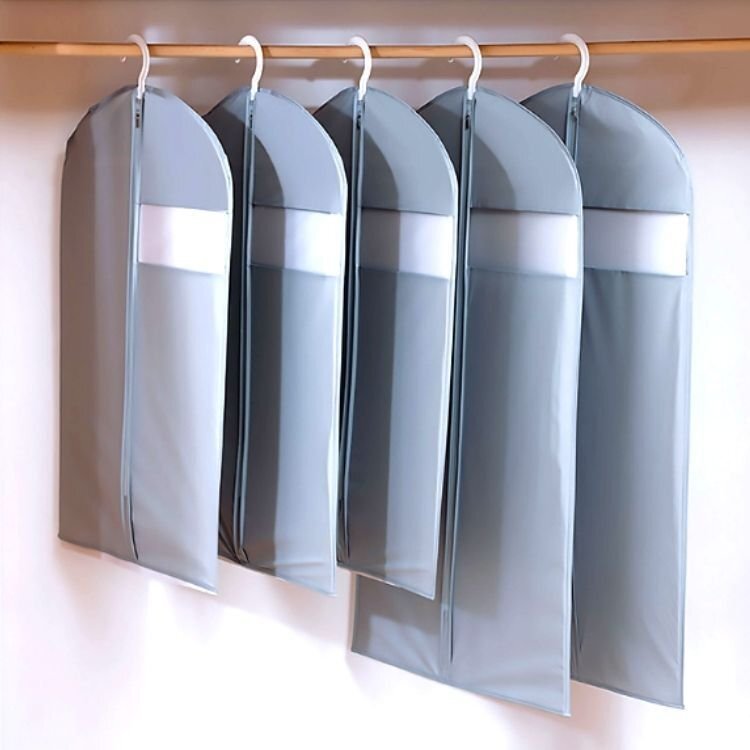 【透明窓付き】透明のPPE窓付きの洋服カバーは中身が見えるからガードされた洋服をひと目で確認することが可能。