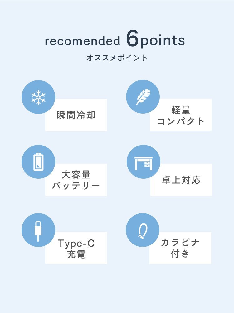 【追加症状】撮影サンプル品 使用感あり \ハンディ扇風機に便利なカラビナ付きが新登場!/ お客様の声をもとに、持ち運びに便利さをプラス! 1秒で瞬間冷却!ひんやり冷たい冷却プレート付きハンディファン! 肌を直接冷やすので体温を下げやすく、冷却力UP! 顔や首、手などに当てると体温を下げやすく、熱中症対策にもオススメです♪ メイク前にお肌をひんやり引き締めて、化粧崩れ防止にも♪ 送風は、弱・中・強の三段階。 パワフル送風×冷却プレートでさらに冷感UP! 最大16時間連続稼働可能な大容量バッテリー搭載! 機内持ち込みもOK! 軽量&コンパクトなので、持ち運びにも便利です。 【商品詳細】 内容:本体、充電用ケーブル(Type-C)、カラビナ カラー:アイボリーホワイト サイズ:約幅6×長さ16.9×厚さ5.3cm 重量:約165g バッテリー容量:最大2000mAh 特徴: 大きい5枚羽根 超軽量165gでコンパクト 静音設計 便利なカラビナ付き 1台4役 2000mAh大容量バッテリー内蔵 ※訳あり品のため、即日発送できない場合があります。 ※出荷前検品により、発送が困難であると判断した場合は、ご注文をキャンセルさせていただく場合がございます。 【訳あり品の注意事項】※必ずご確認ください ・お安く提供しておりますのでご了承の上、ご入札をお願いします。 ・落札個数分の送料が必要となります。 ・通常の商品とは異なり、保証期間はございません。 ・組み立てに必要なボルトナット類(組立パーツ)が不足している場合は、お客様でご用意お願いいたします。 ・細かなことが気になる神経質な方は、ご入札はお控えください。 ・訳あり部分の整備、修繕や調整が可能な方のご入札をお待ちしております。 ・訳あり品はその性質上、再入荷のお約束ができません。 ・販売価格は随時見直しを行い、事前の予告なく変更いたします。 ・本商品を使用した際に発生したトラブル、事故につきまして、当社は一切の責任を負いかねます。 ・人身および物損事故のないように十分ご注意ください。 ・商品は、モニターによって色合いが異なって見える場合があります。 ノークレーム・ノーリターンでお願いいたします。 ・訳あり品ですので、いかなる場合もノークレーム/ノーリターンでお願いします。 |