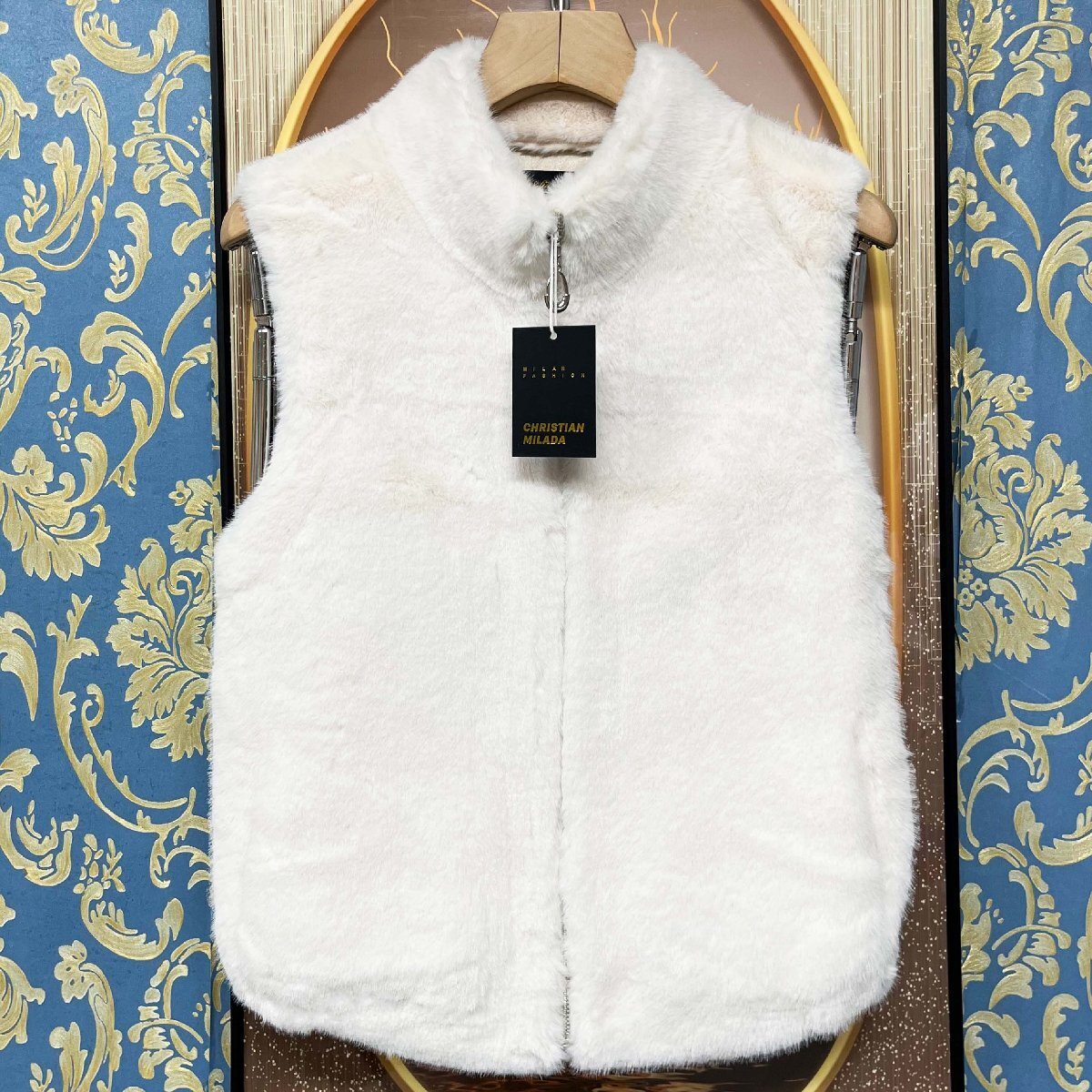 定価7万★christian milada・ミラノ発・ファーベスト★ミンク混 保温 ソフト 立ち襟 無地 着せ カジュアル 毛皮コート ジャケット レディース 秋冬 M/36サイズ
