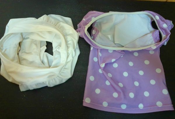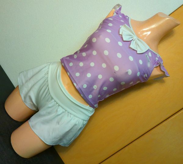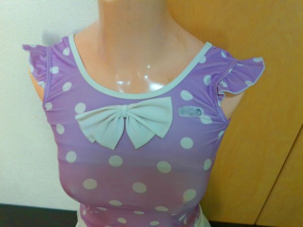 中古品☆ドット柄上下セットアップセパレート水着130サイズ 名前あり 水着&レオタード3着まで同梱可 出品商品10点落札送料無料