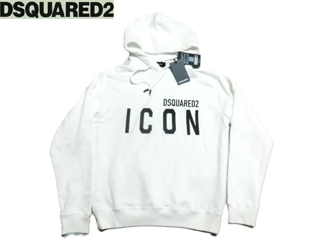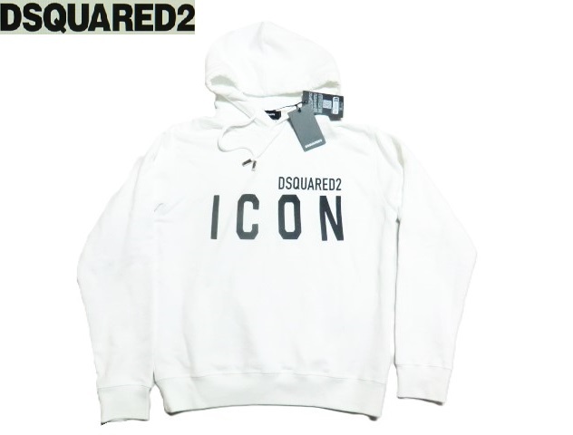 ★新品! DSQUARED2 リッチでお洒落!!存在感抜群☆S79GU0003 都会派オトナの今ドキ!!格上げ☆あったか裏起毛♪DSQ2 ICONロゴパーカー<M>白
