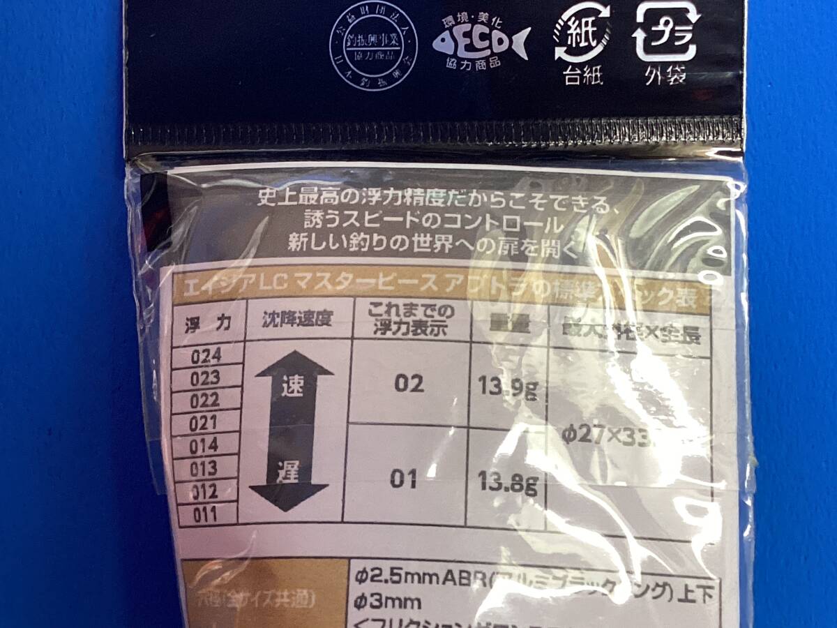 | 浮力 | 重量 (g) | JANコード | 穴径 最大外径×全長 (mm) | 参考上代 価格(円) |