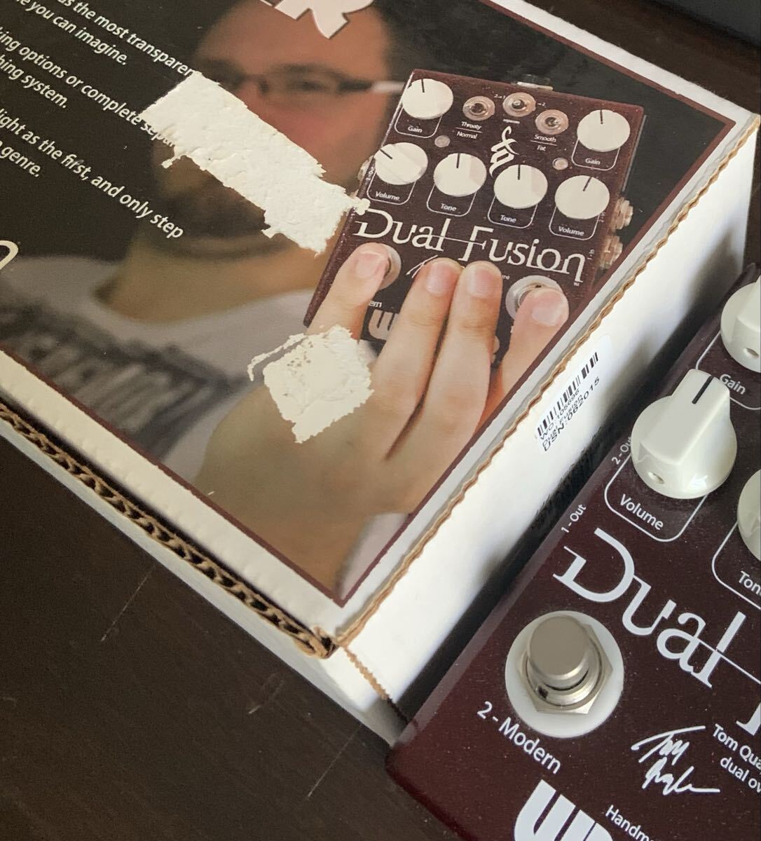 Tom Quayleのシグネイチャーペダルであり、現行品V2は横型ですがこちらは縦型、ただしスイッチやジャック類の構成や出音は変わらないようです。