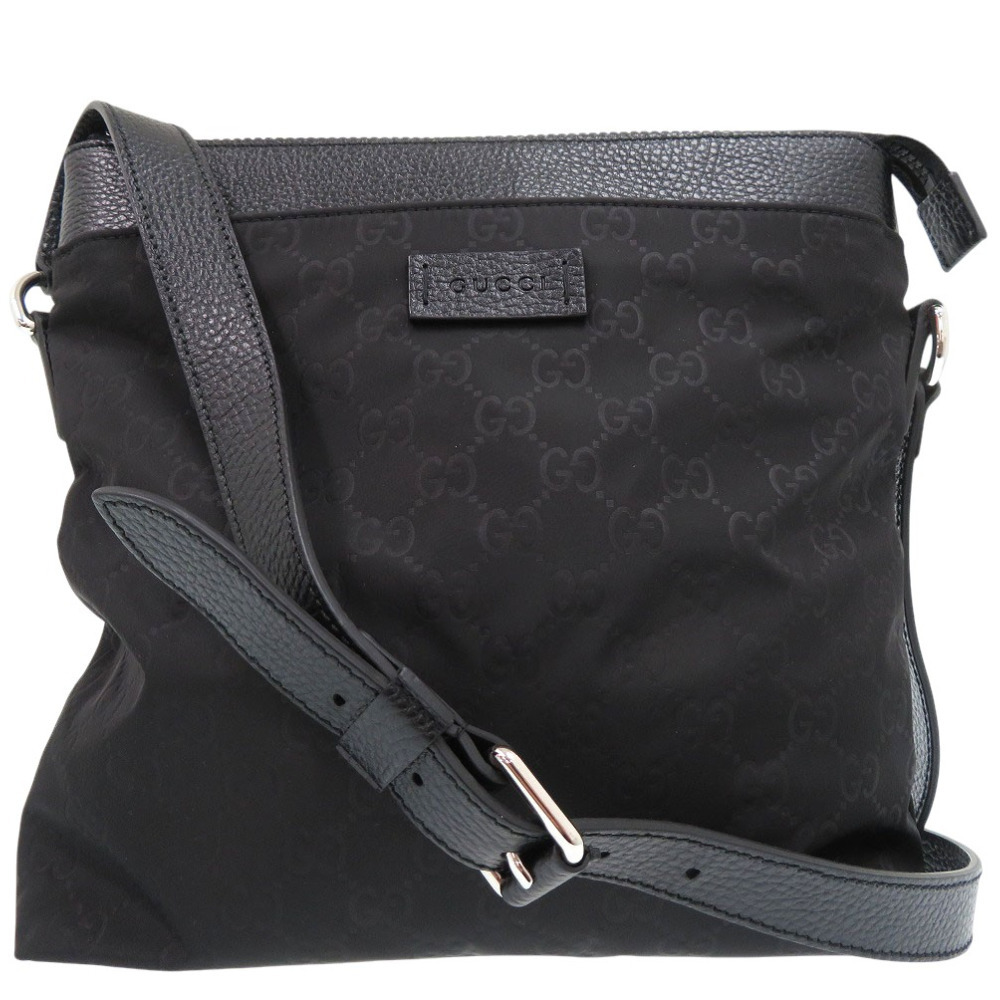 美品 グッチ GG柄 グッチシマ 510342 ショルダーバッグ レザー グッチシマナイロン ブラック 1162 GUCCI